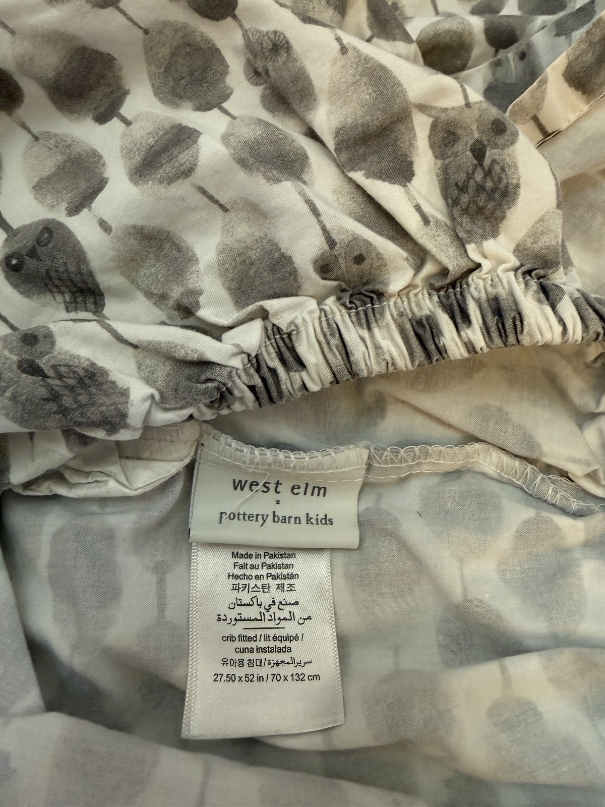 West Elm Pottery Barn Kids Gray Stamped Owl Fitted Crib Sheet Organic Cotton