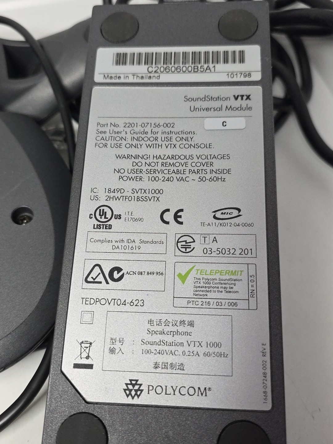 Polycom SoundStation VTX 1000 Conference Phone 2201-07142-001