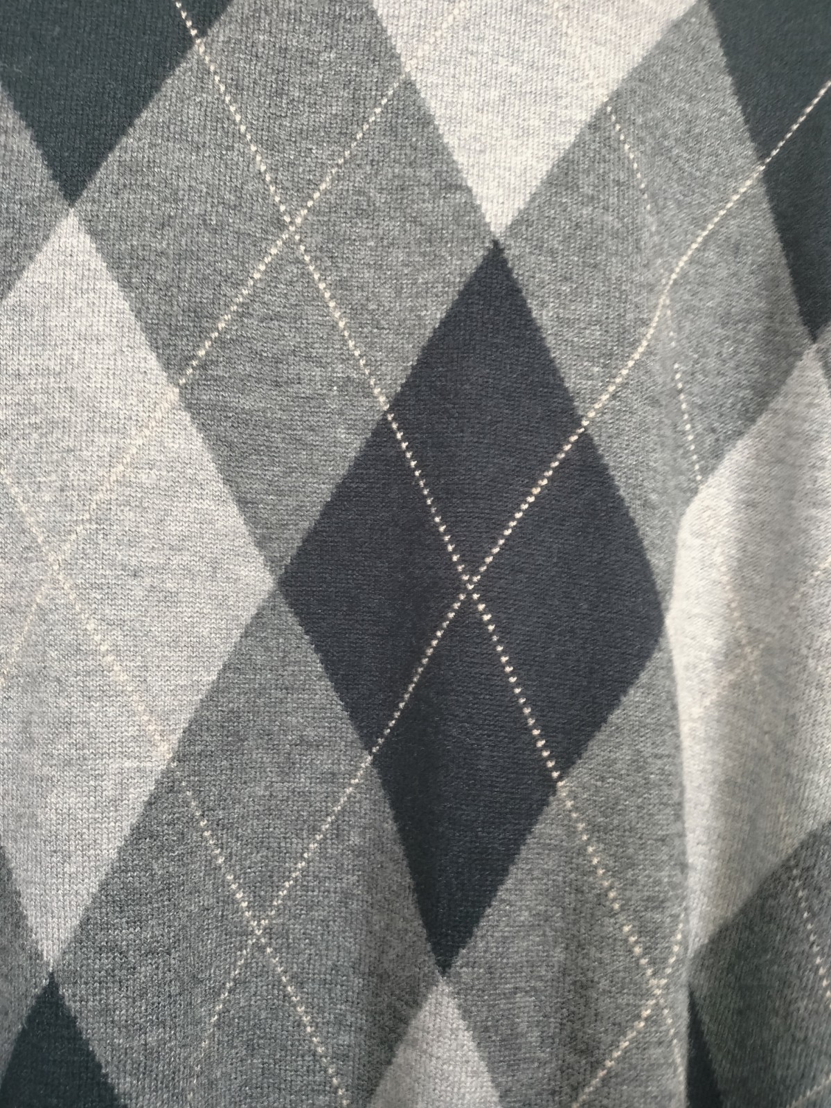 как выглядит VTG Northern Isles Men s L Argyle Sweater Silk Cashmere Blend Gray Black V-Neck фото
