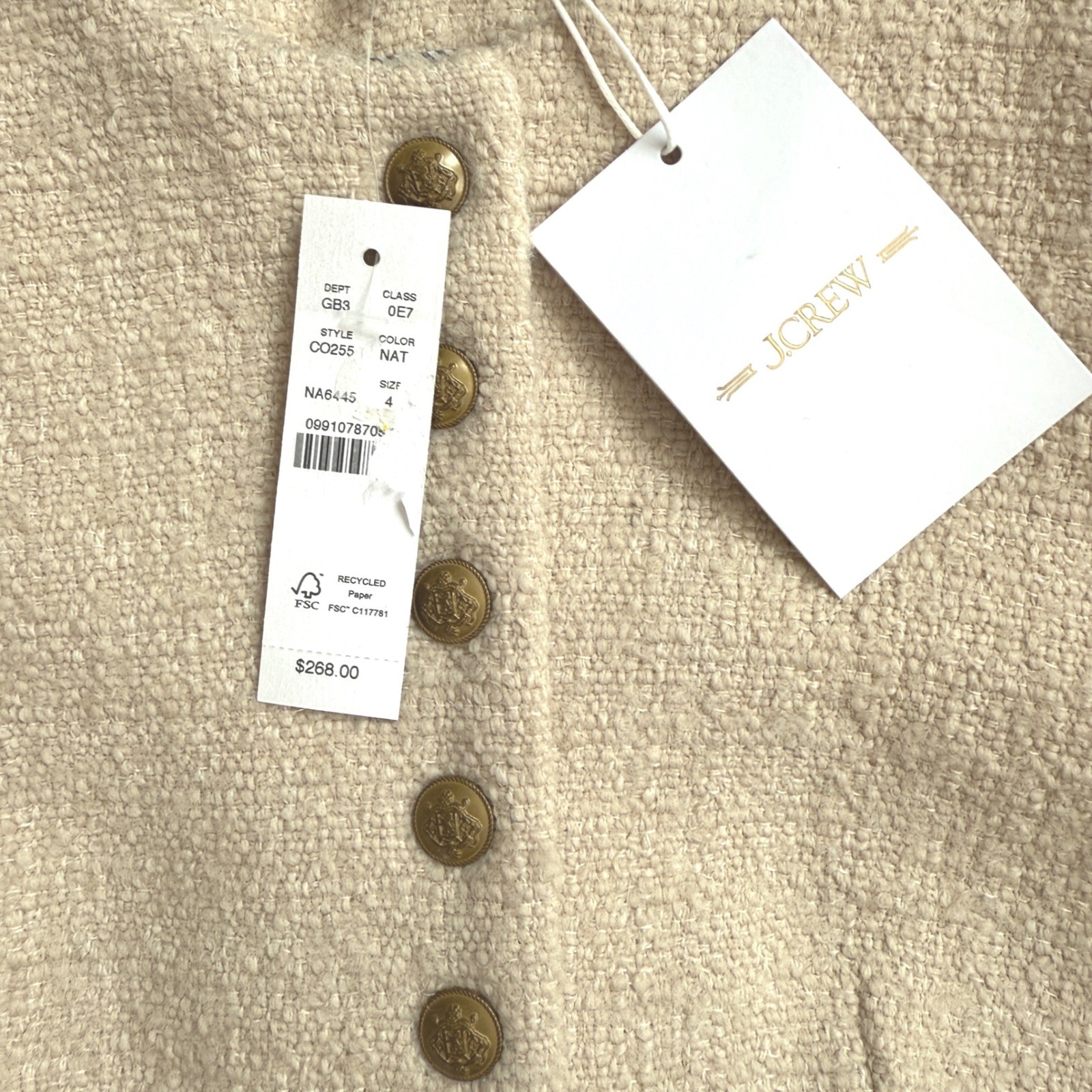 J CREW Bridgette lady jacket in tweed ivory size 4