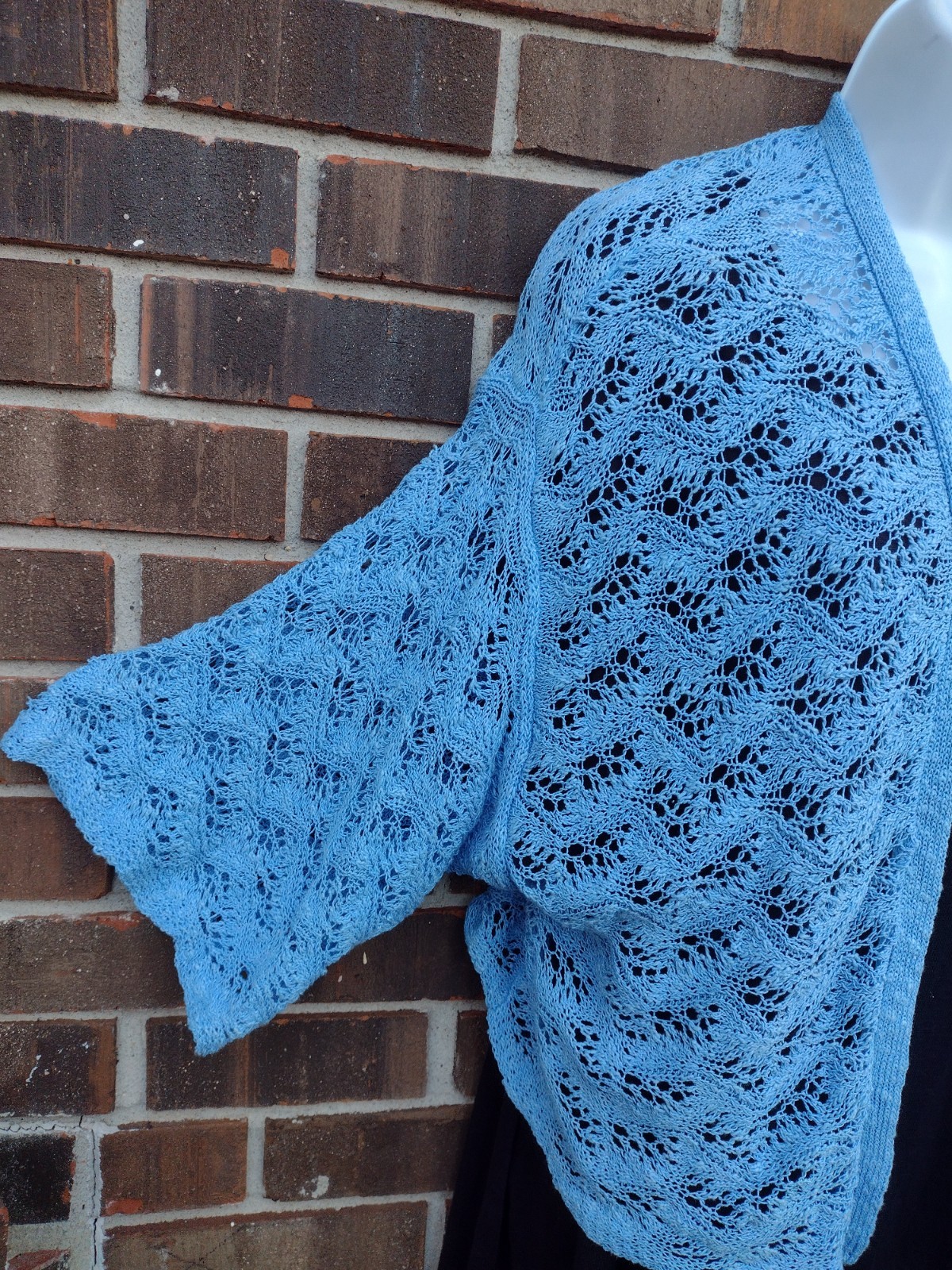 Chicos Shrug Patrice Sweater Linen Blend Crochet Open Knit Blue 2 M Cardigan NWT