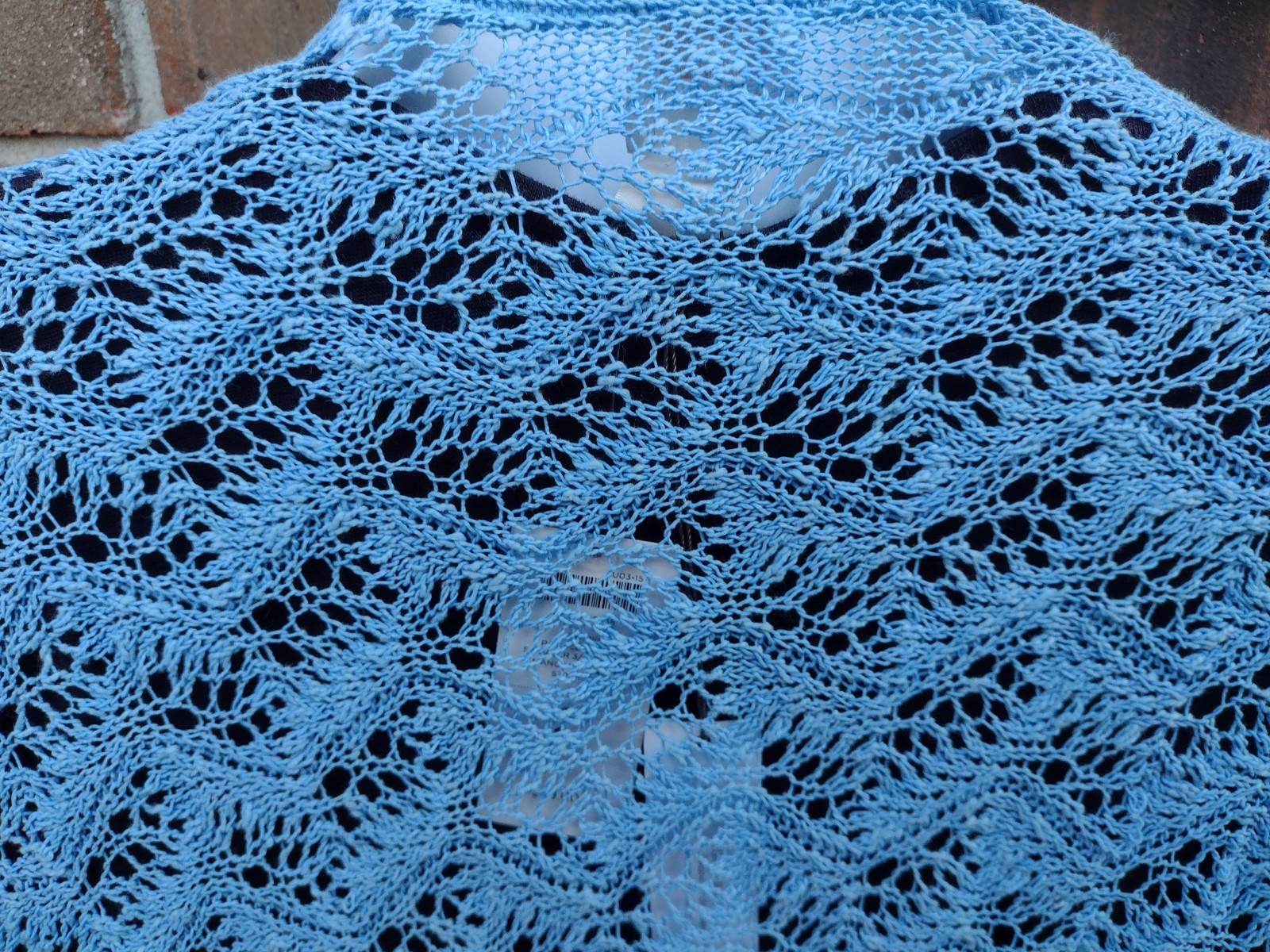 как выглядит Chicos Shrug Patrice Sweater Linen Blend Crochet Open Knit Blue 2 M Cardigan NWT фото