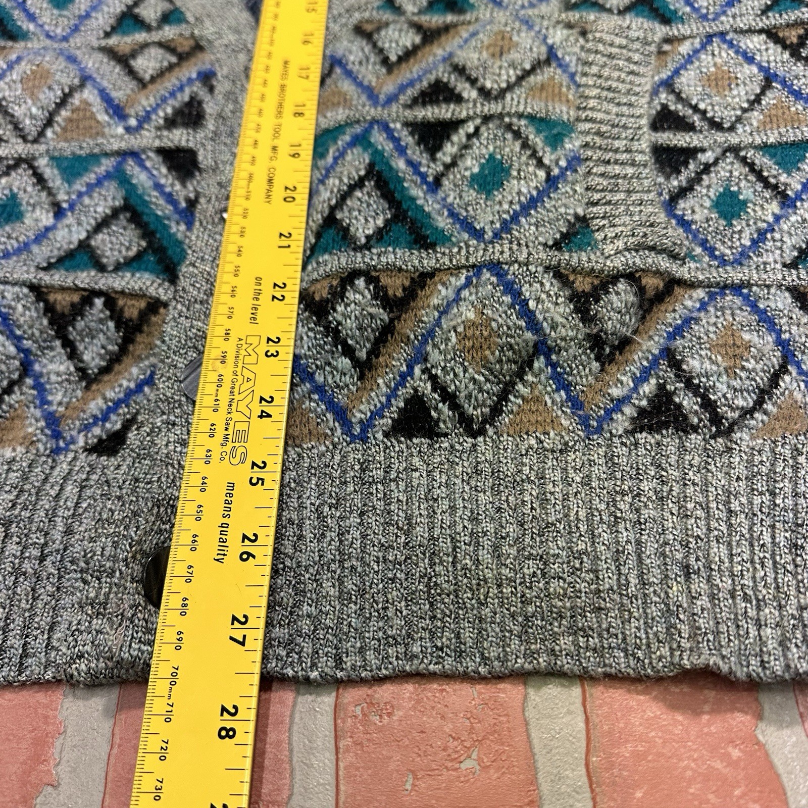 как выглядит VTG LONDON FOG ACRYLIC CARDIGAN KNIT SWEATER GEO GRAY SZ L USA MADE BLUE фото