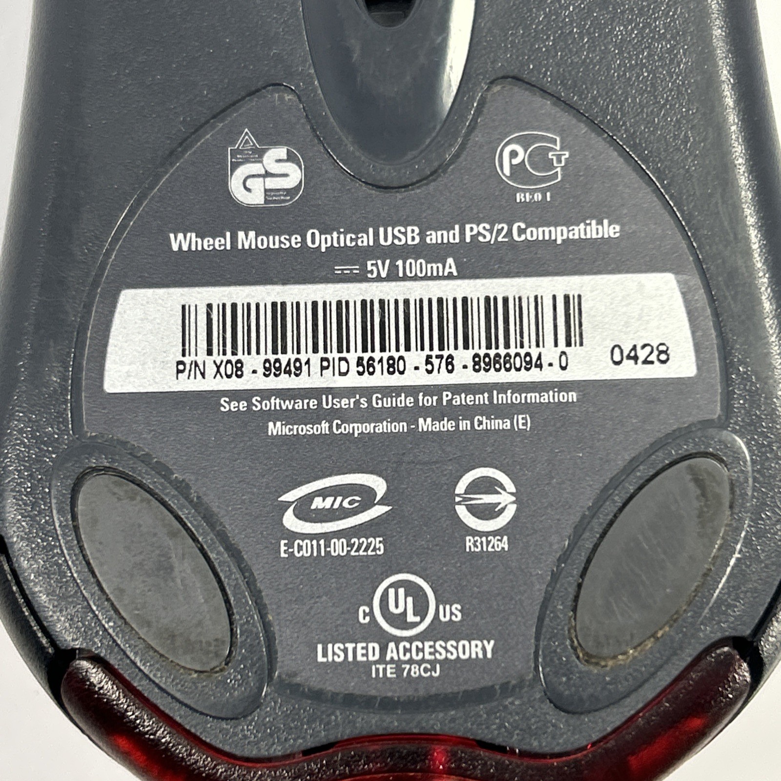 Vintage Black Microsoft Wheel Mouse Optical USB X08-99491
