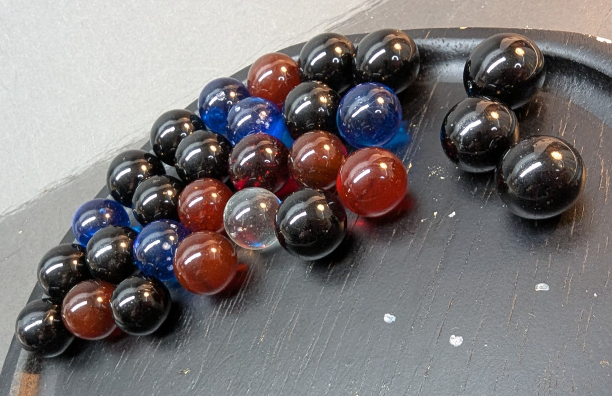 LOT OF 28 Black Blue Red Clear Glass Marbles Solid Vintage