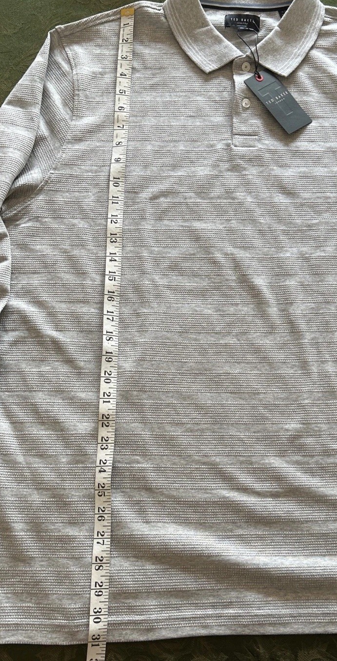 как выглядит Ted Baker London Popcorn Stripe Long Sleeve Polo Shirt Grey Heather Mens XL NWT фото