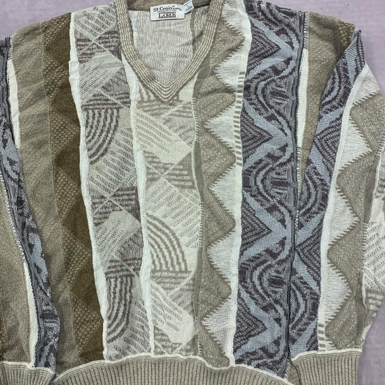 как выглядит Vintage Knitted Jumper abstract patterned v-neck grandad knit sweater Mens L фото