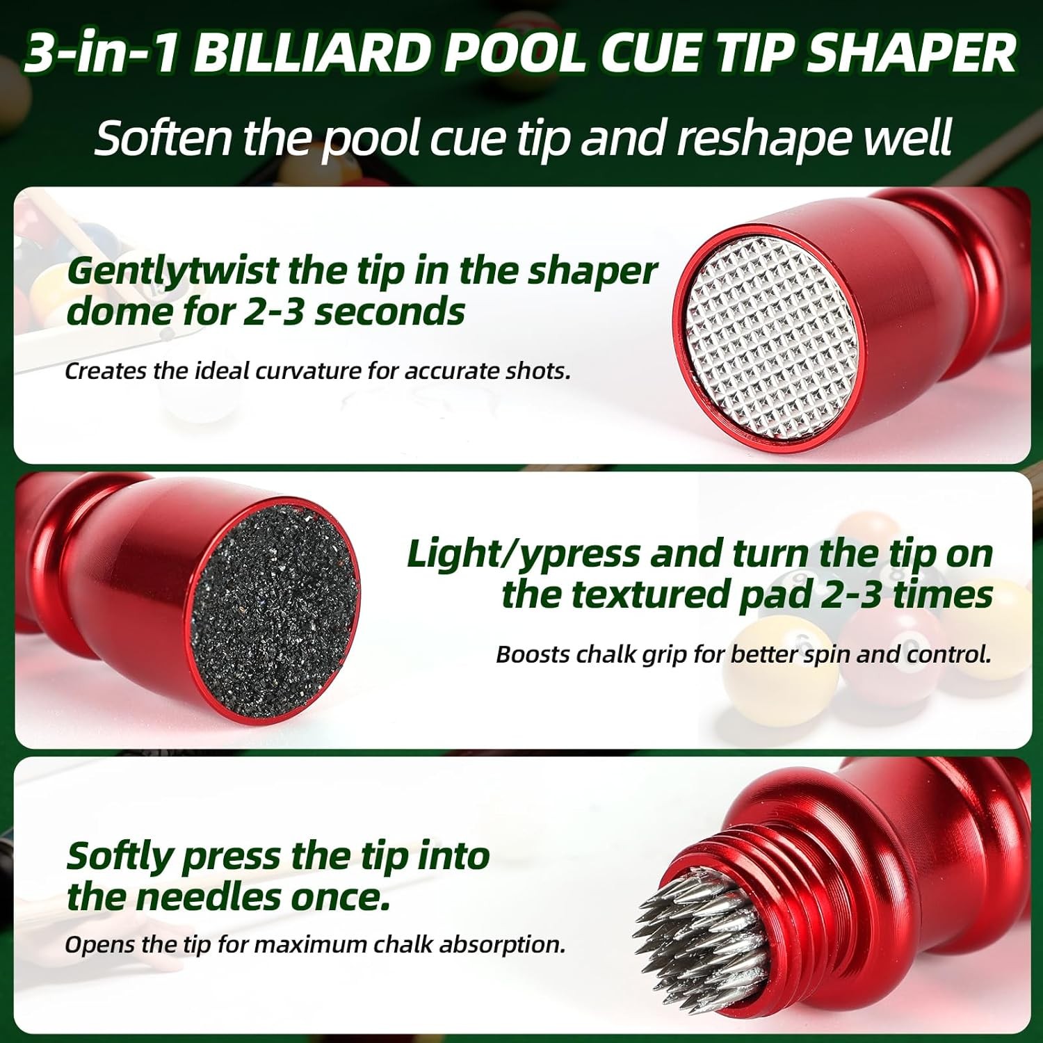 Included Components: 3-in-1 Pool Cue Tip Tools Red and Black