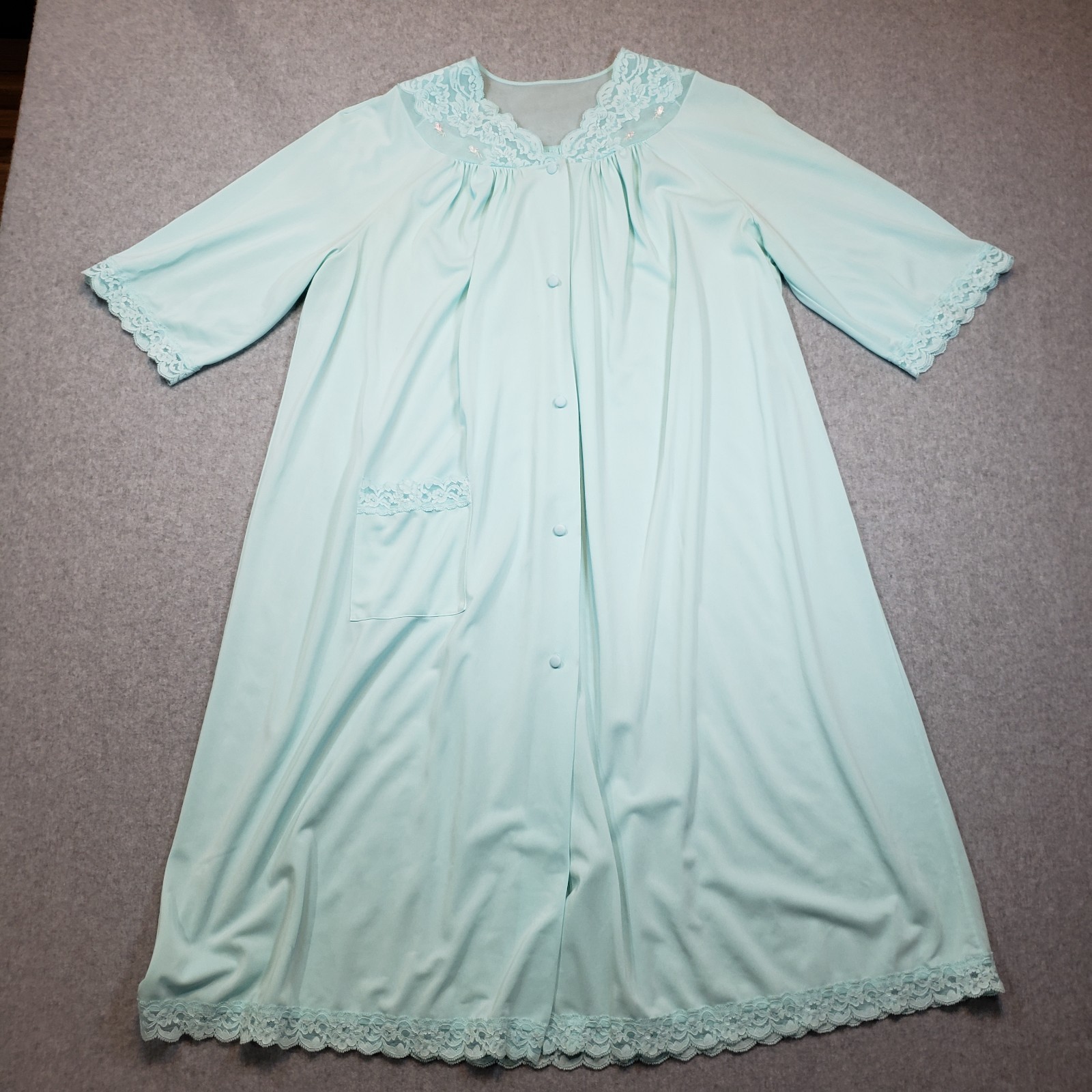 Vintage Shadowline Peignoir Set 2 pc Nightgown Robe Sz Med Lt Blue USA READ