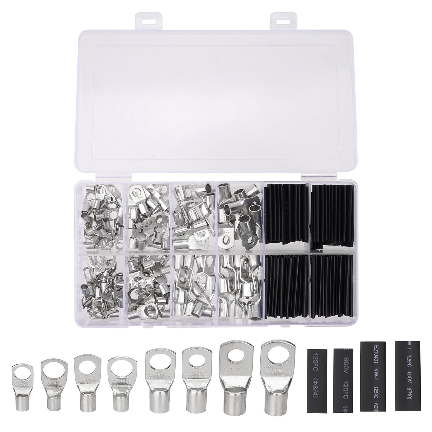 280pcs Silver Lugs Ring Terminals Bare Battery Welding Crimp Wire Connectors Kit