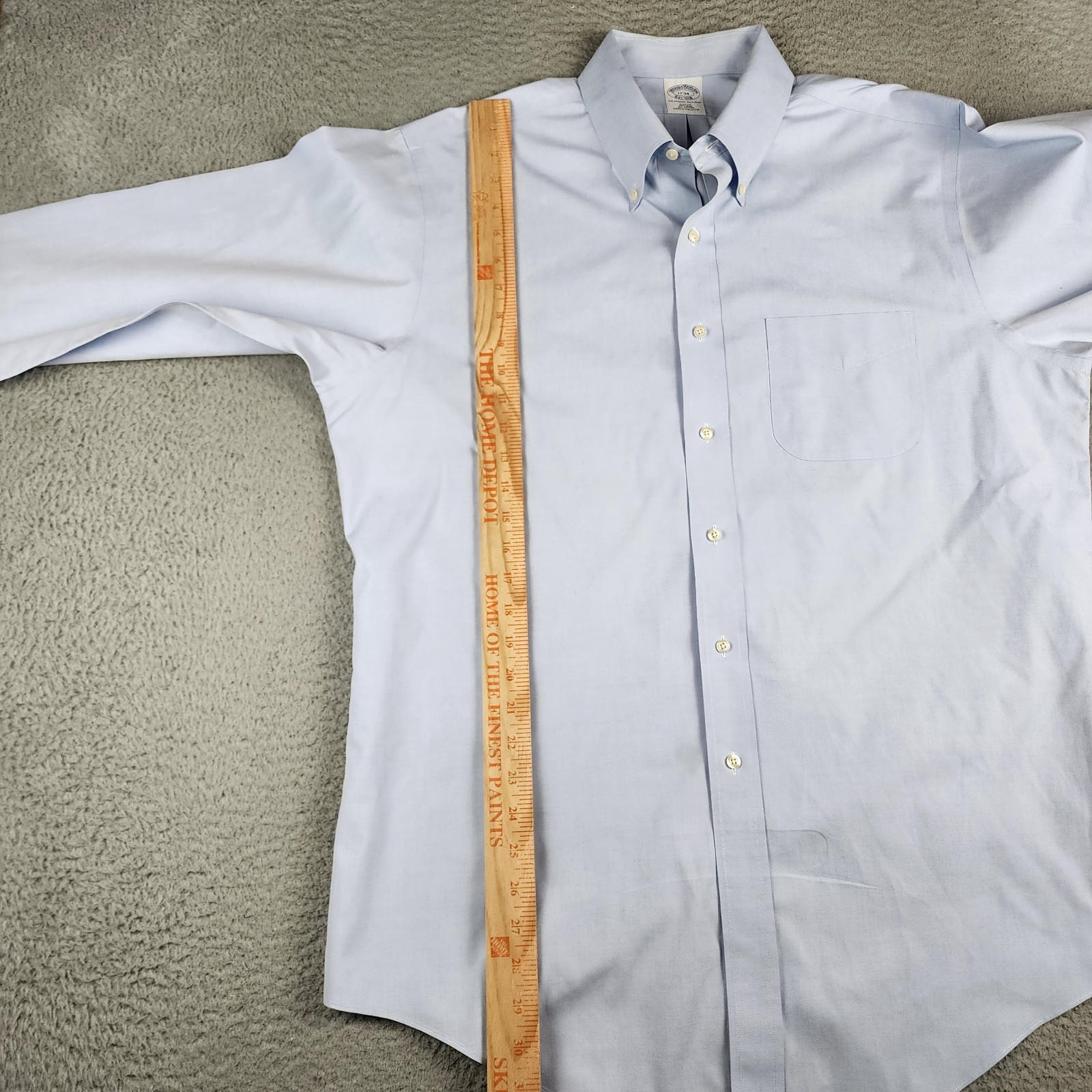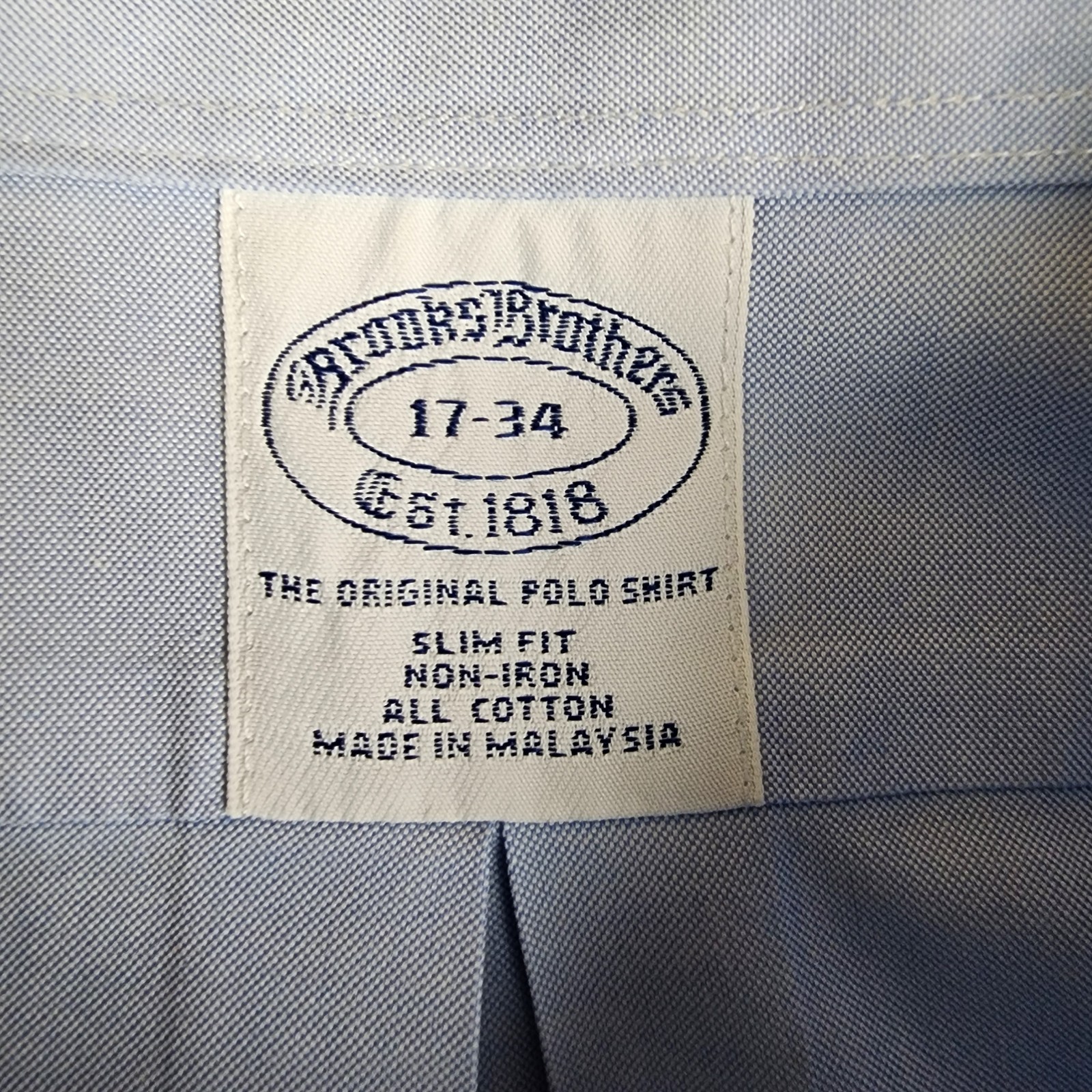 как выглядит Brooks Brothers Dress Shirt Mens 17/34 Blue Slim Fit Non Iron Long Sleeve фото