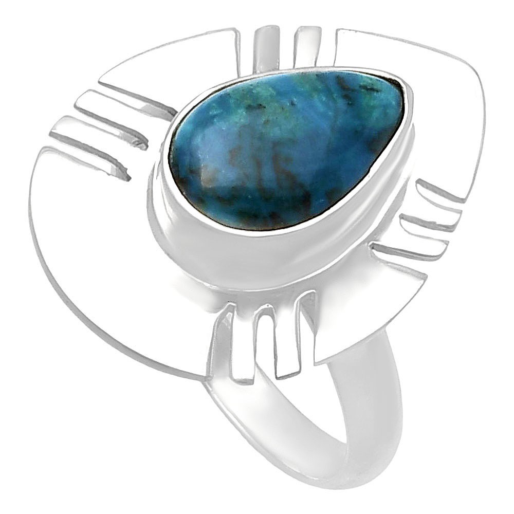 как выглядит Natural Azurite Chrysocolla 925 Sterling Silver Ring s.7 Jewelry R-1240 фото