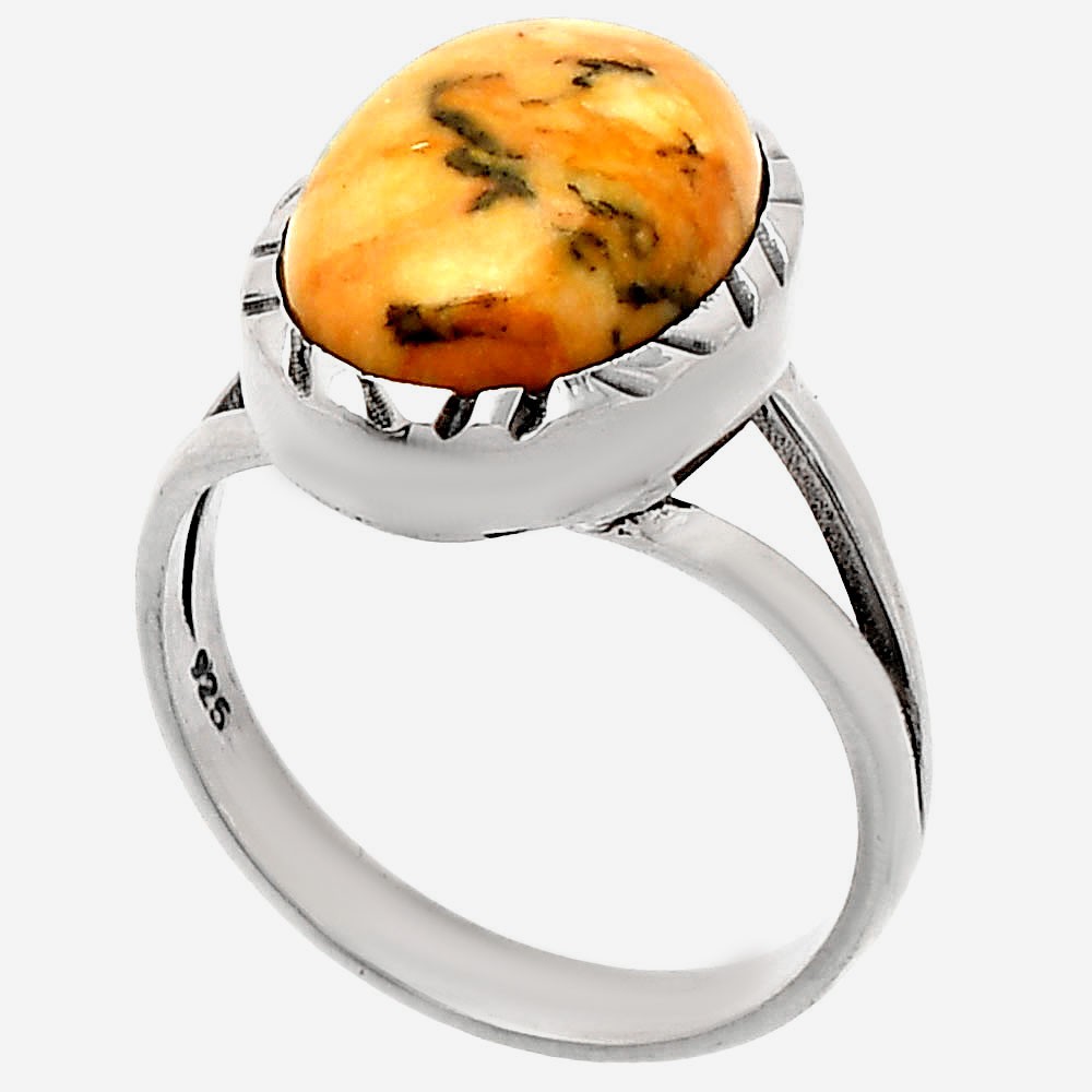 Natural Honey Dendritic Opal 925 Sterling Silver Ring s.6.5 Jewelry R-1074