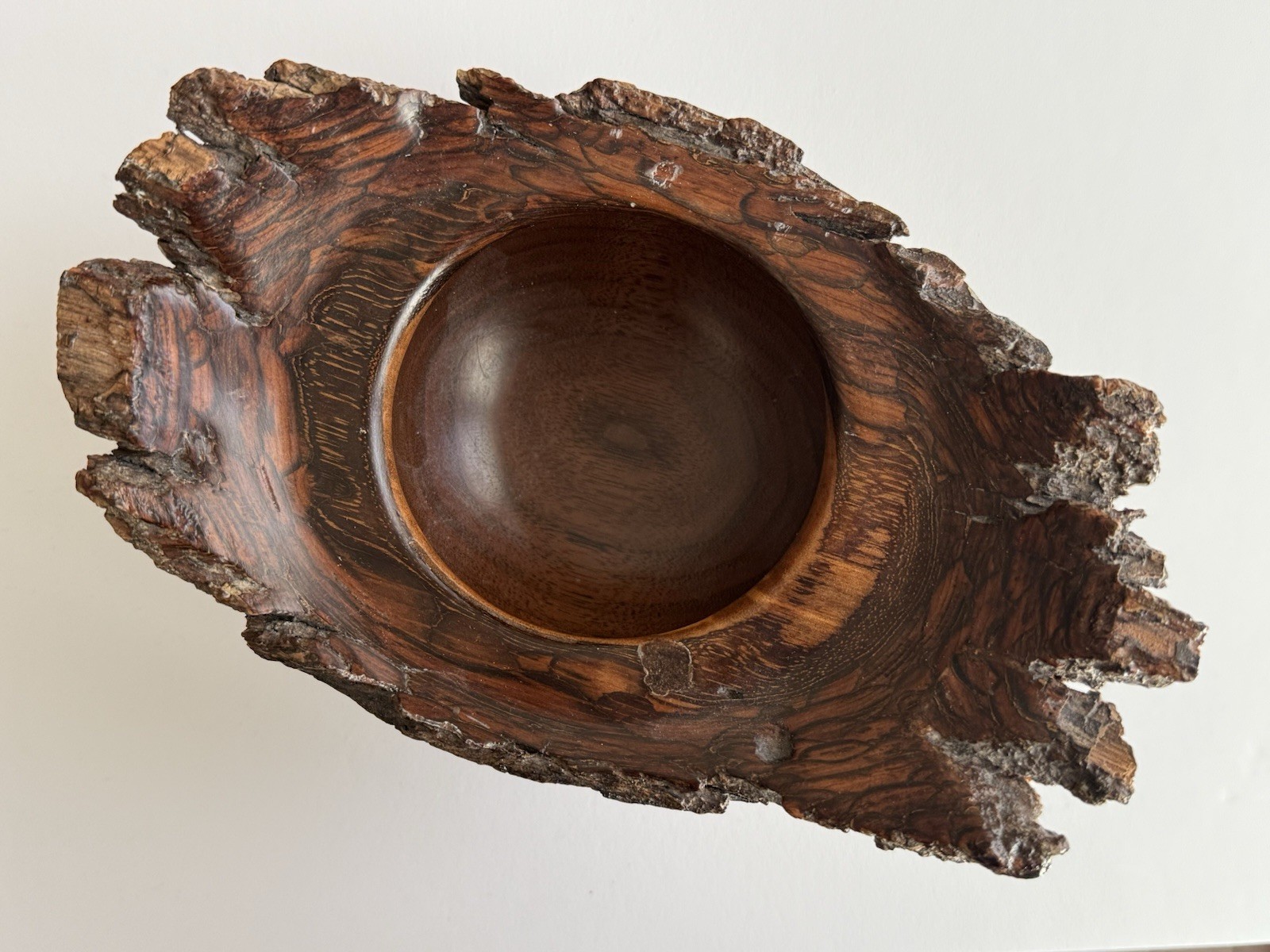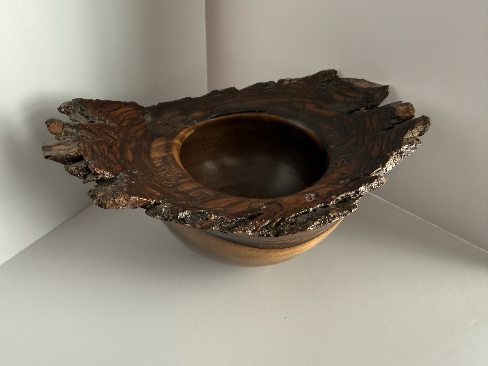 Vintage Rustic Artisan Crafted Hand Turned Live Edge Wooden Bowl
