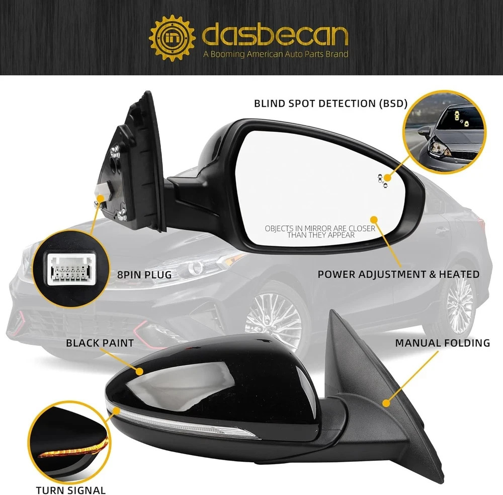 • Passenger Side Mirror Compatible with 2019-2024 KIA Forte with Power Glass/Heate
