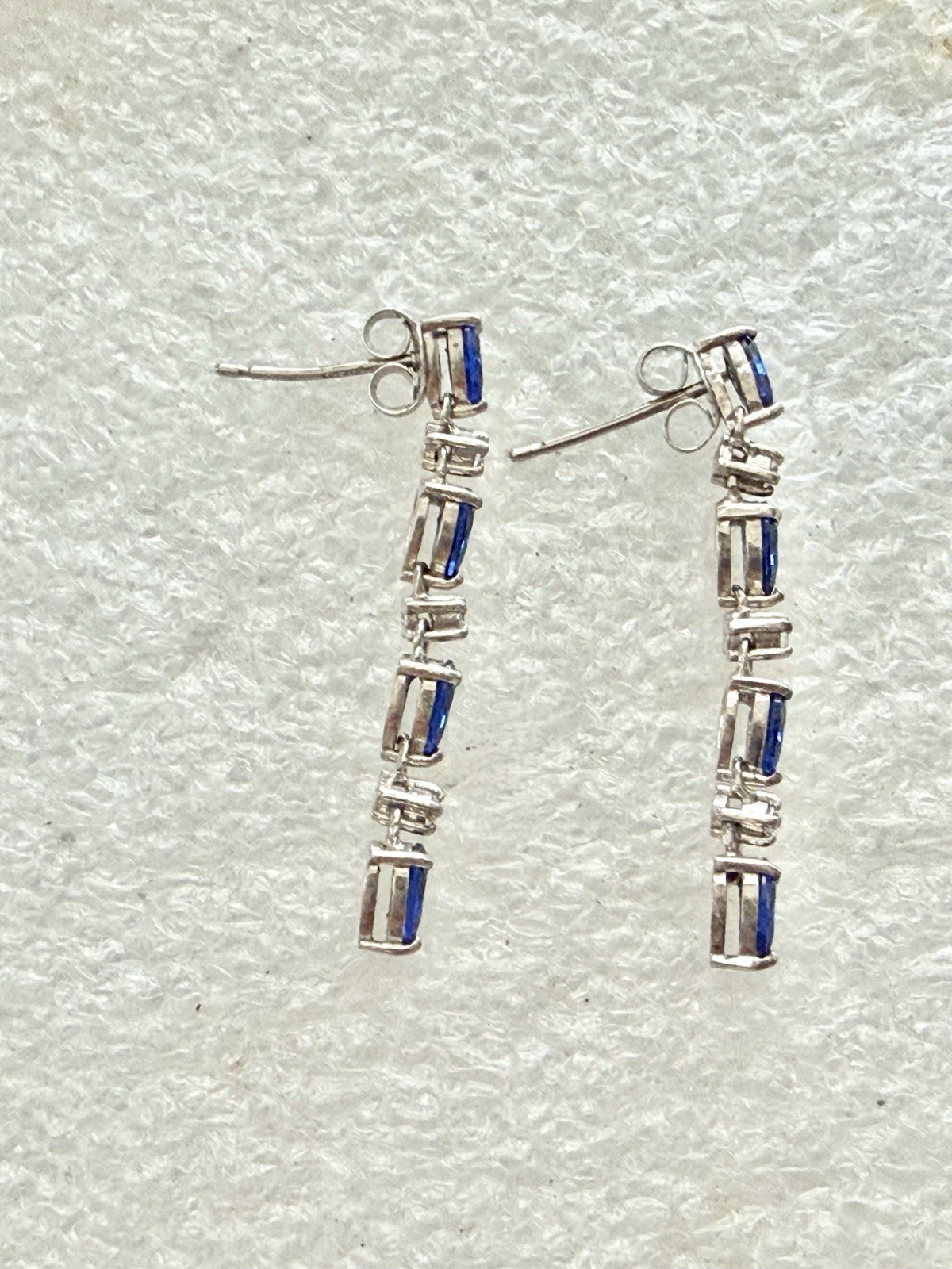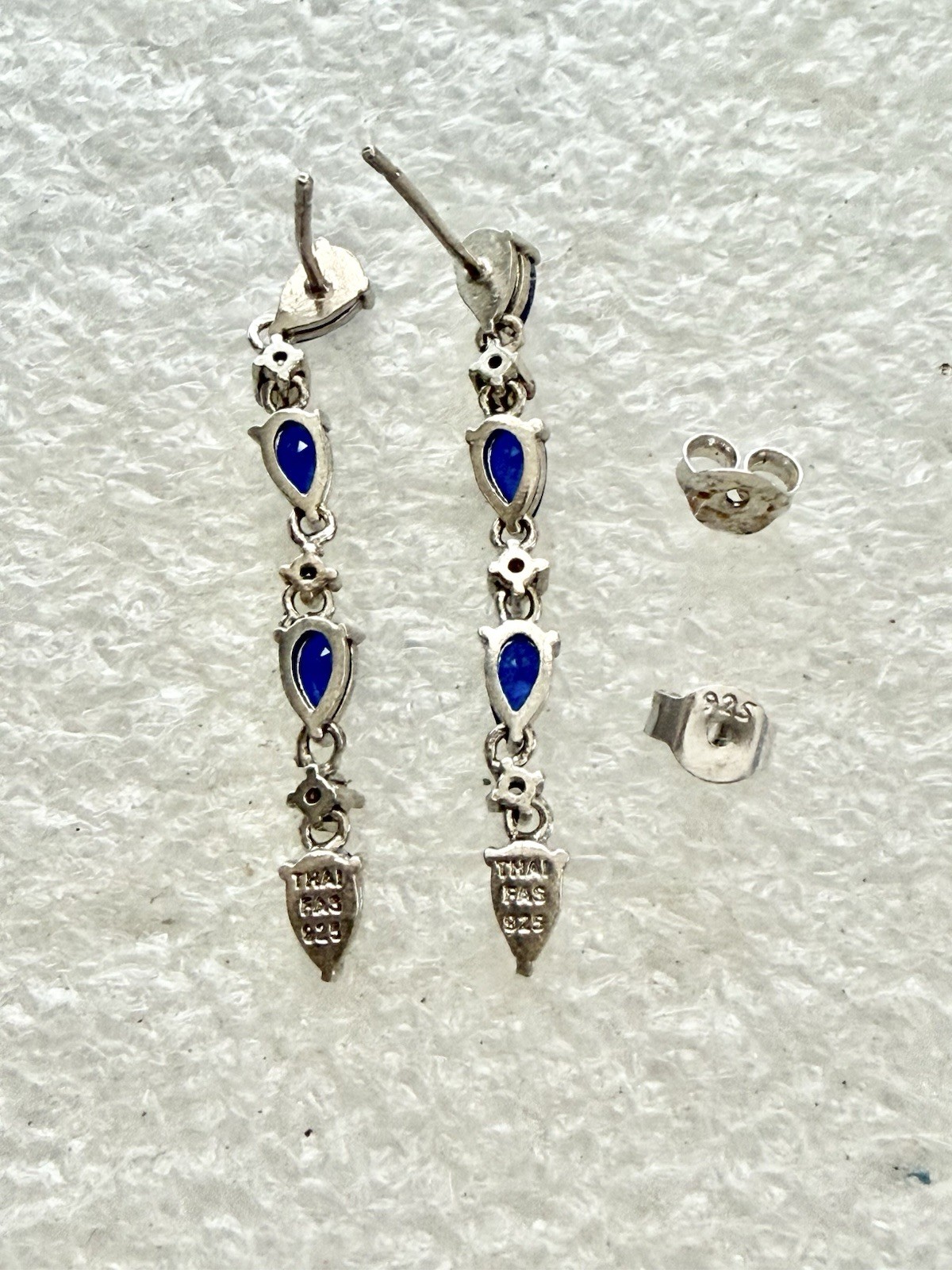 как выглядит 925 Sterling Silver 4 Pear Shape Lab SAPPHIRES 1.5 Dangle Earrings 2.38g фото