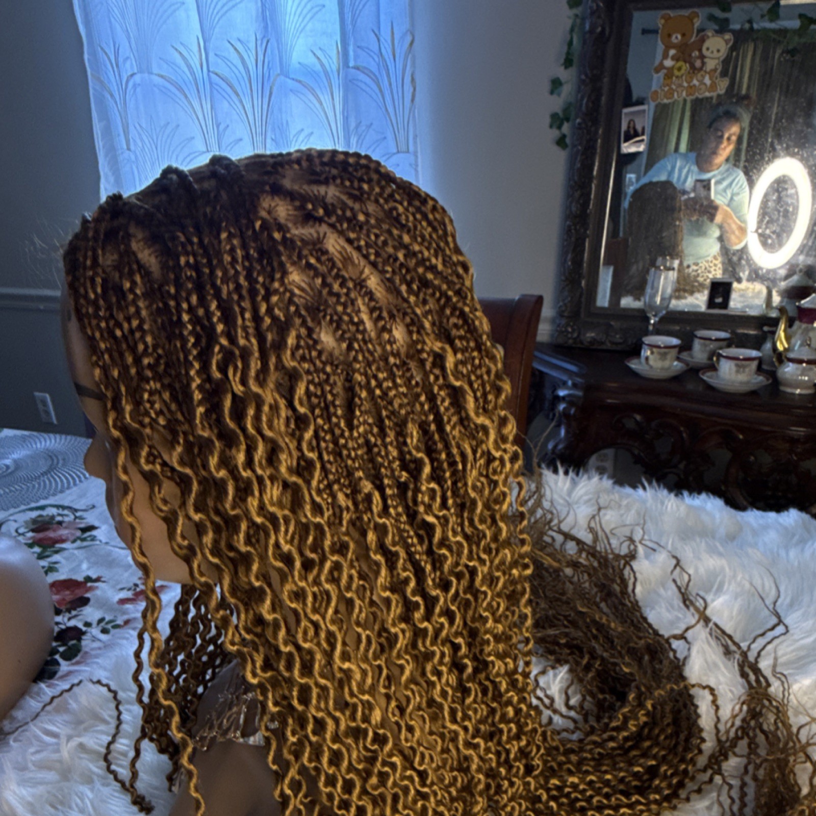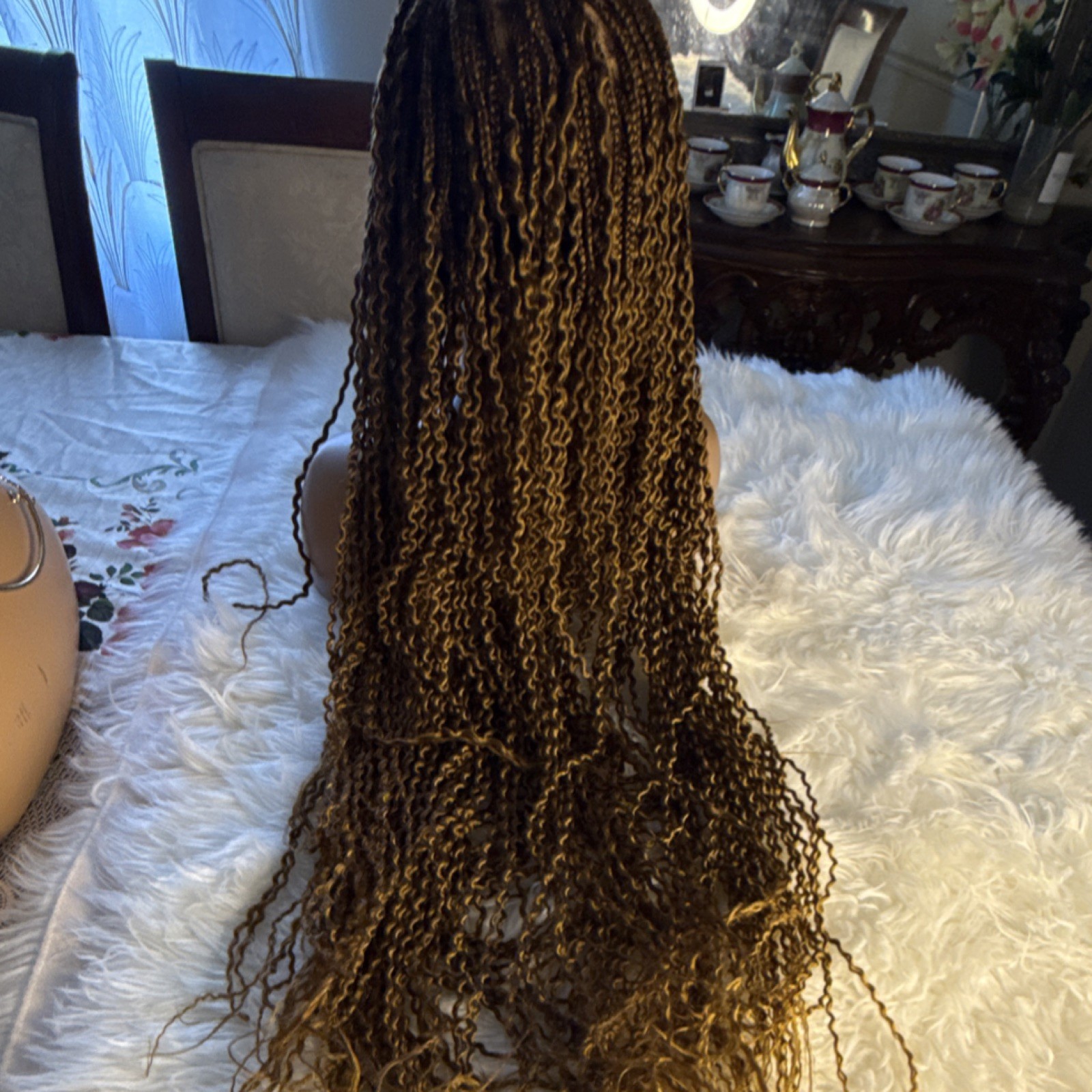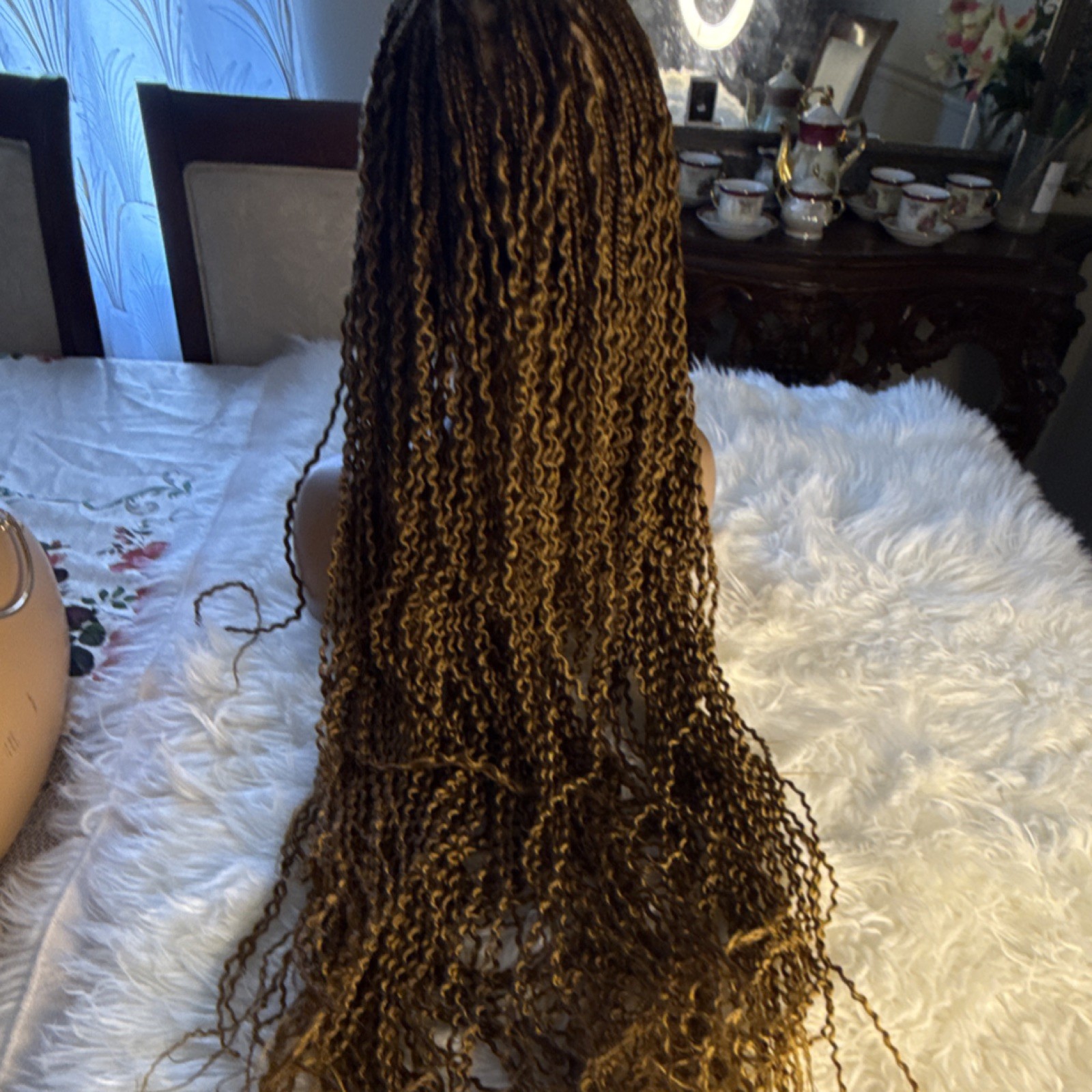Braided Wig Curly Golden Brown Synthetic Fashion Hairpiece for Women