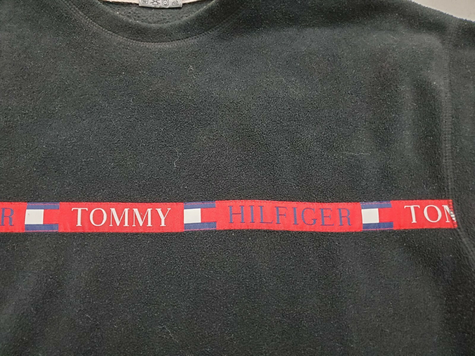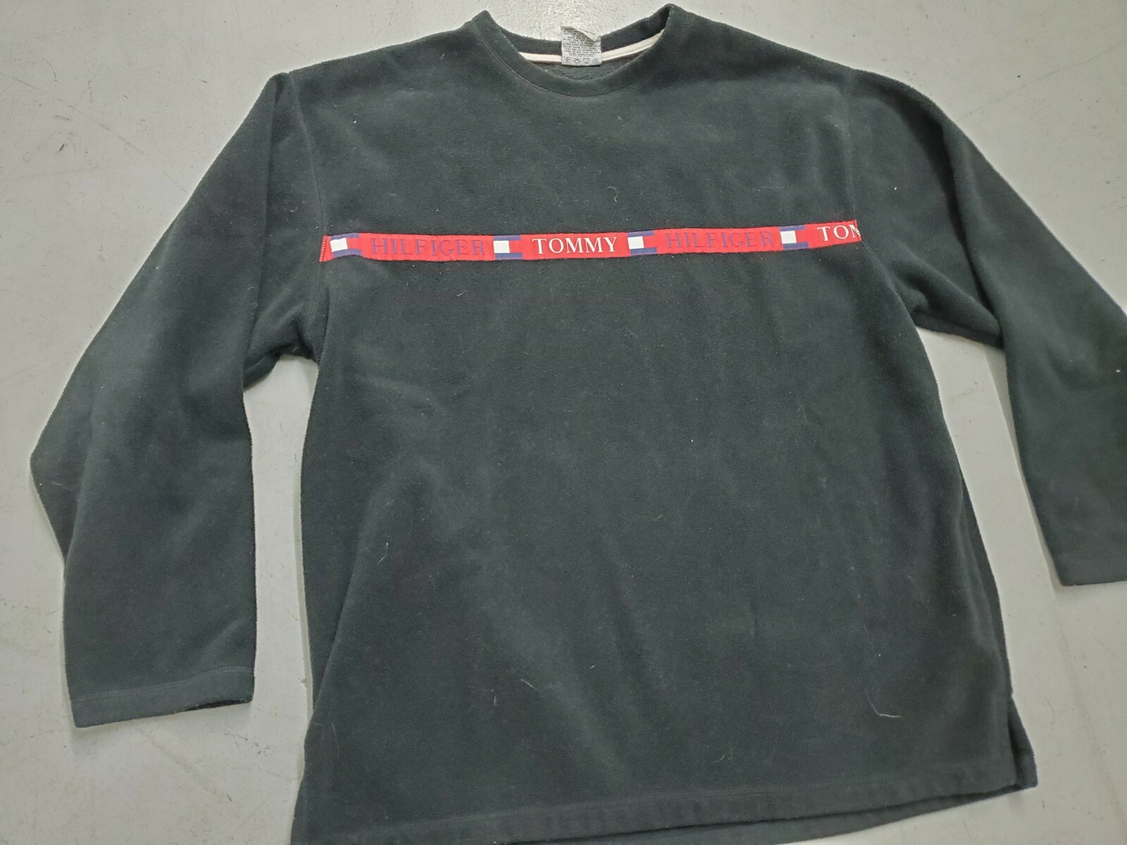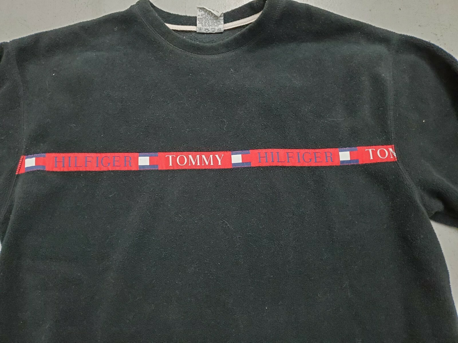 как выглядит Tommy Jeans Large Black Fleece Sweater Tommy Hilfiger Spell Out Vintage фото