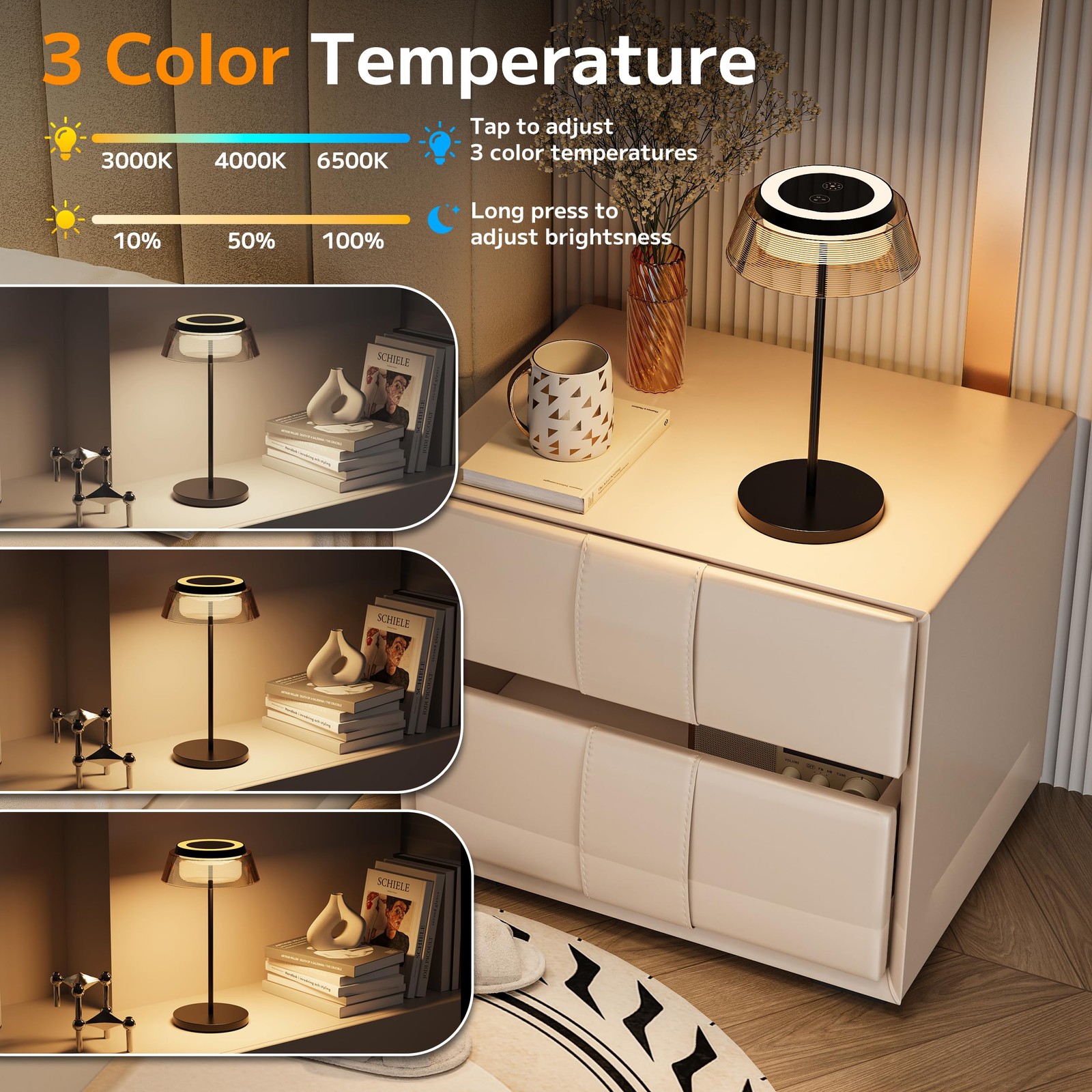 Table Lamp Set of 2 Rechargeable Cordless Desk Lamp 5500mAh Battery Operated