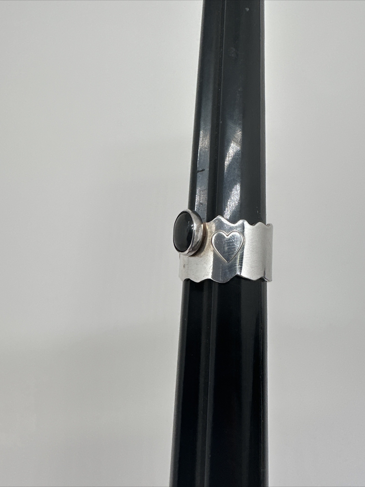 как выглядит Handcrafted Sterling Silver Black Agate Ring Size 6 Wide Band фото