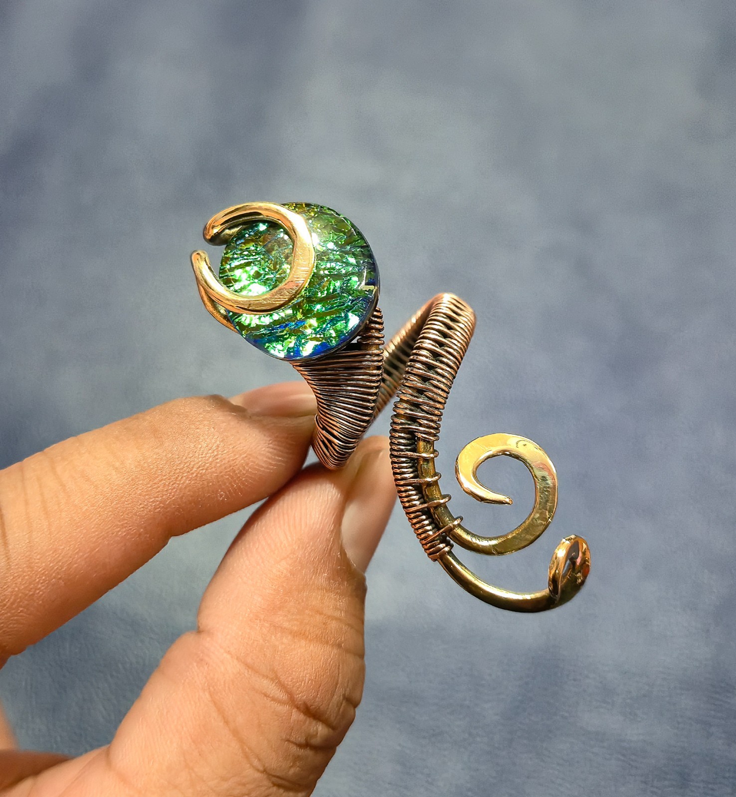 Australian Triplet Opal Ring Two Tone Copper Wire Wrapped Ring Adjustable Ring