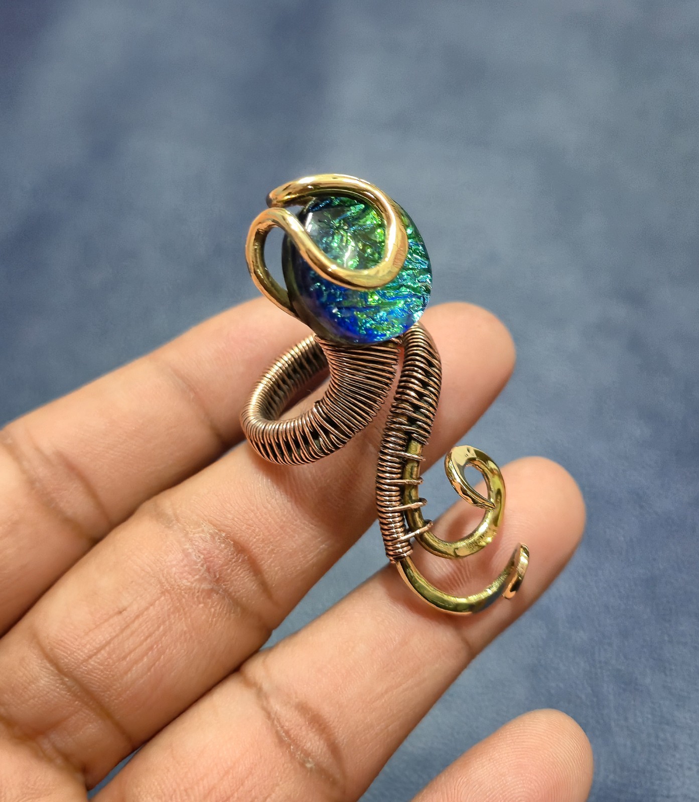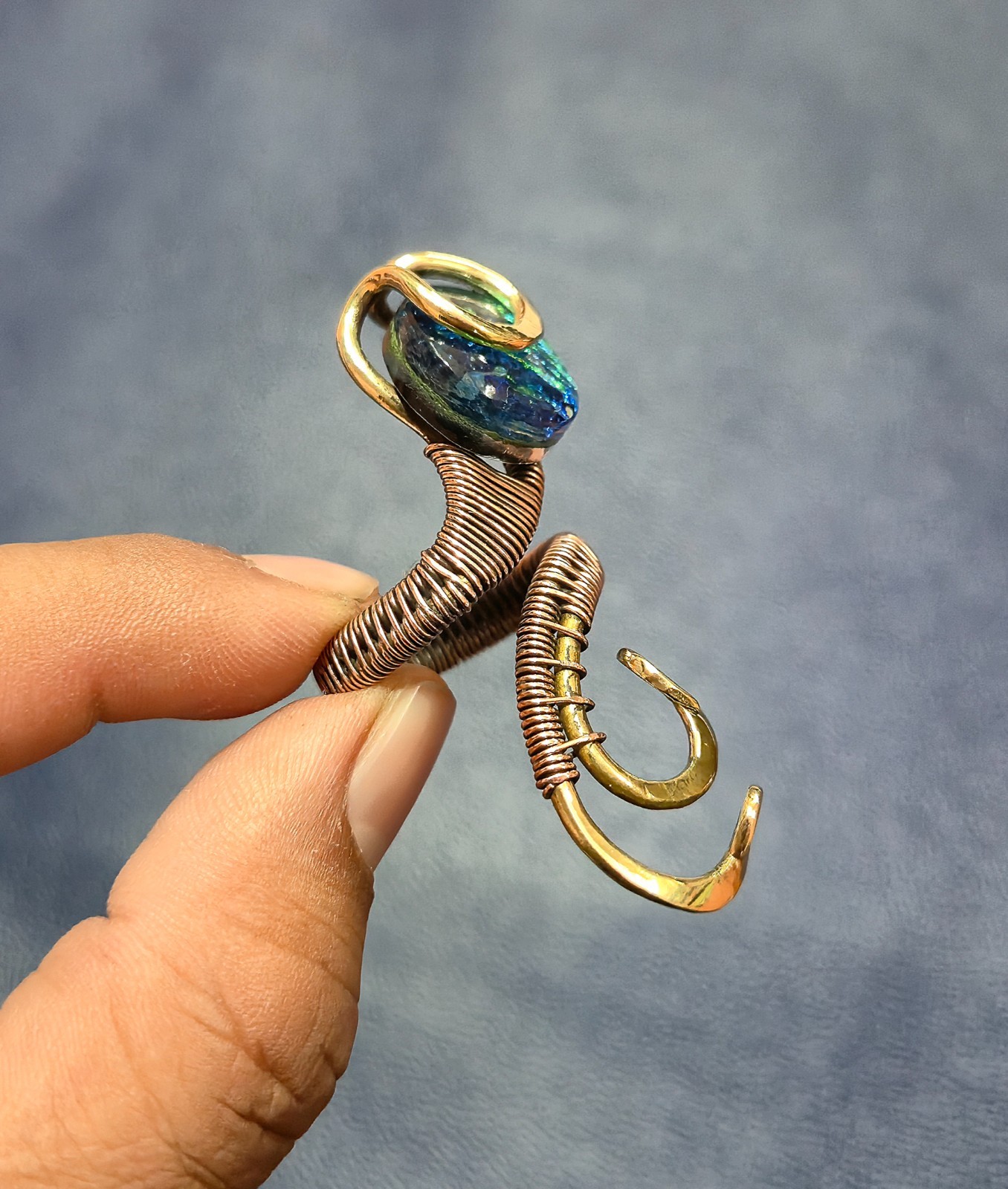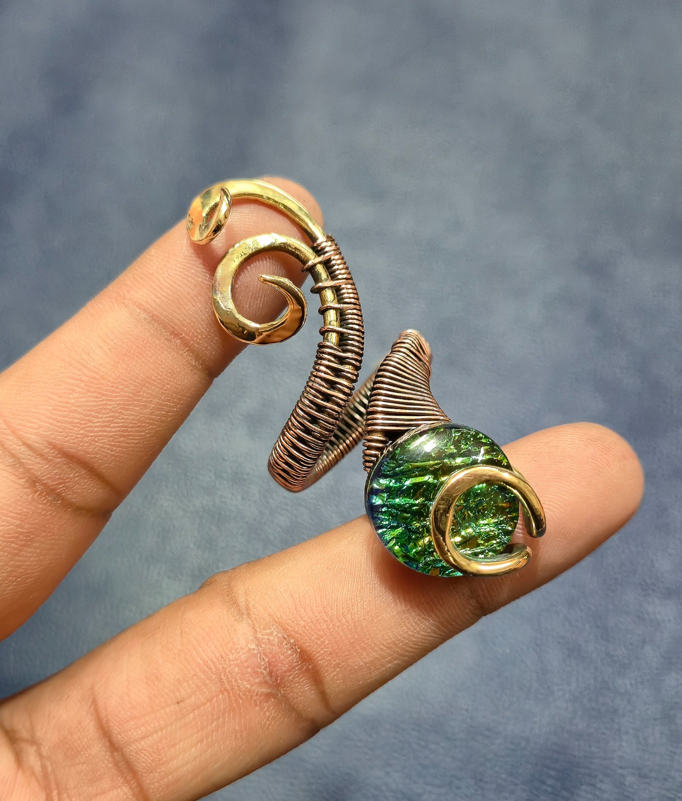 как выглядит Australian Triplet Opal Ring Two Tone Copper Wire Wrapped Ring Adjustable Ring фото