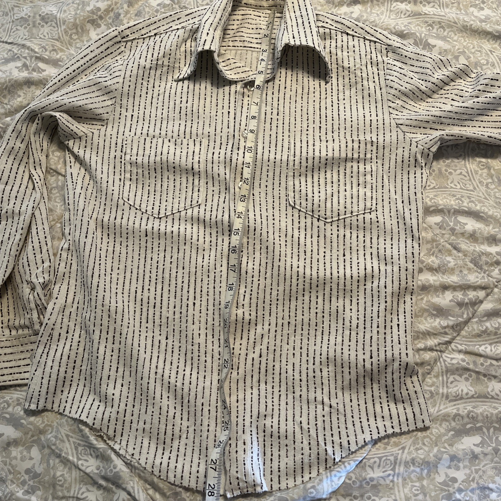 как выглядит Vtg Textured Disco 1970s Button Up Shirt Fashion Knits - See Desc. фото