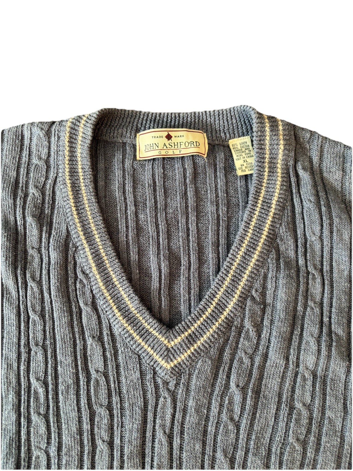 как выглядит John Ashford Golf Grandpa Sweater Vest Blue With White Trim Linen Blend Size XL фото