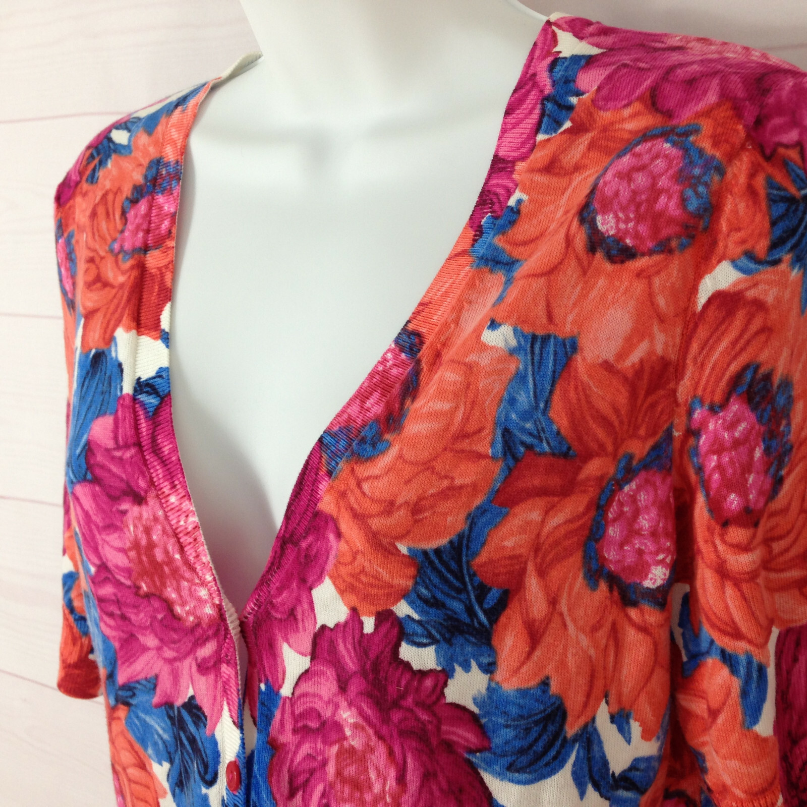 как выглядит Talbots Floral womens size XS multicolor v-neck short sleeve button up cardigan фото