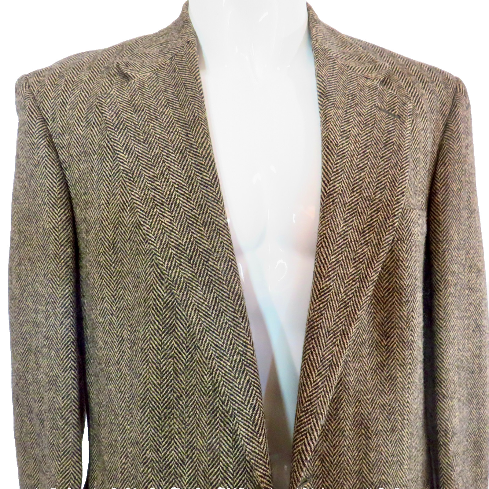 как выглядит Lands End Lambswool Tweed Sport Jacket Mens-42 Reg Herringbone Khaki Black NEW фото