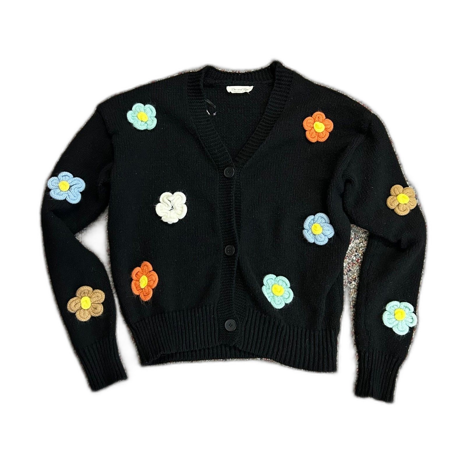 Doe Rae Y2K Womens Black V-Neck 3D Daisy Floral Long Sleeve Cardigan Size M