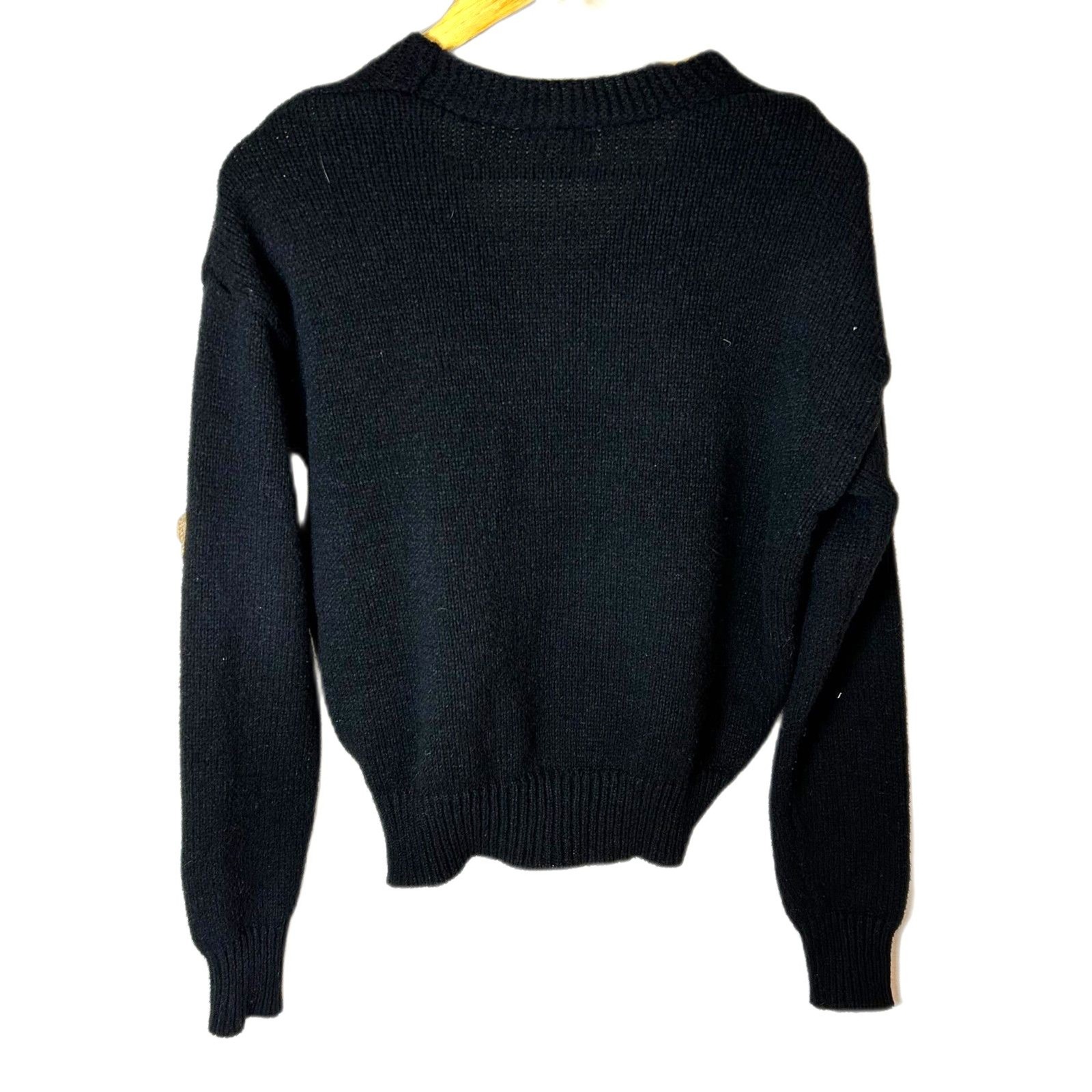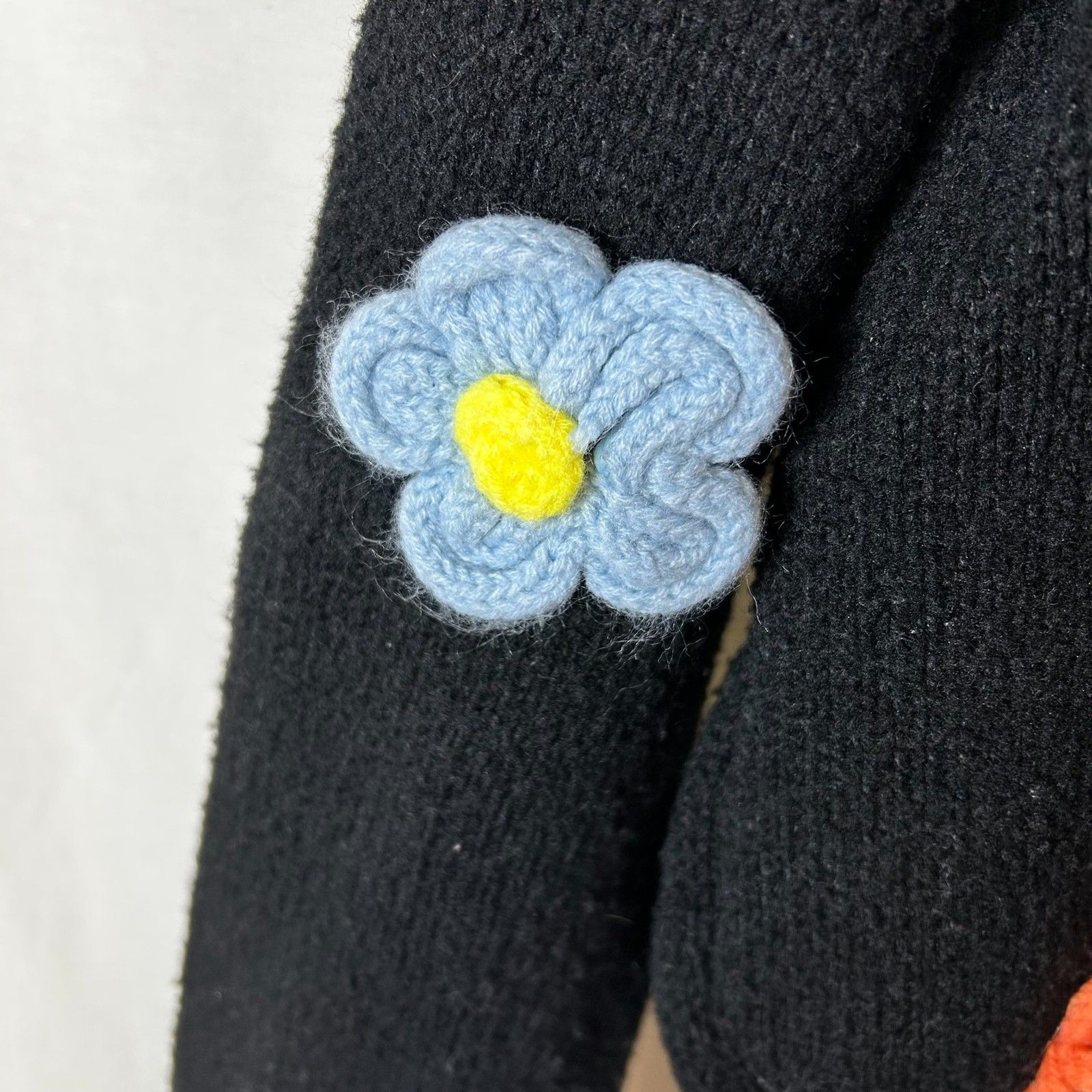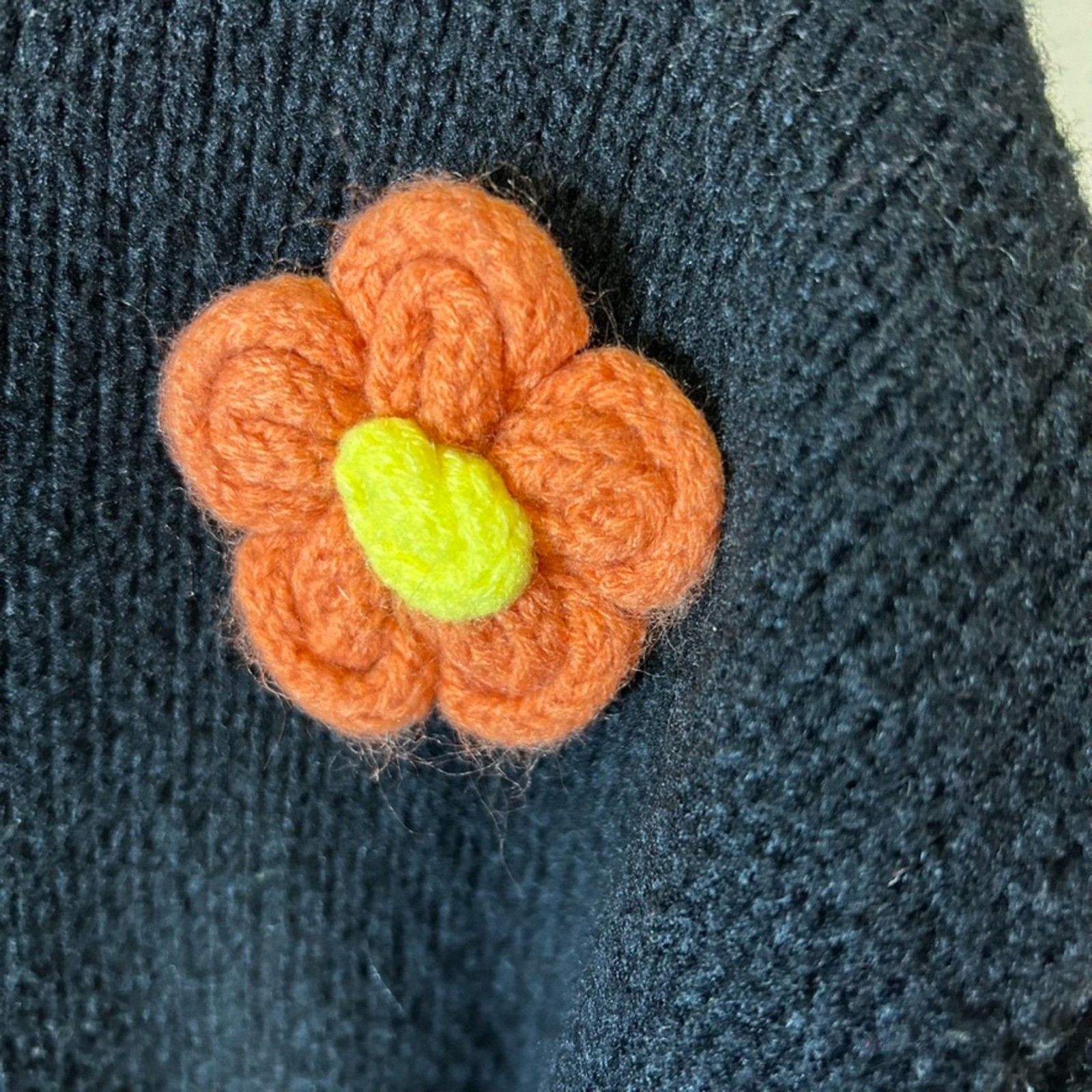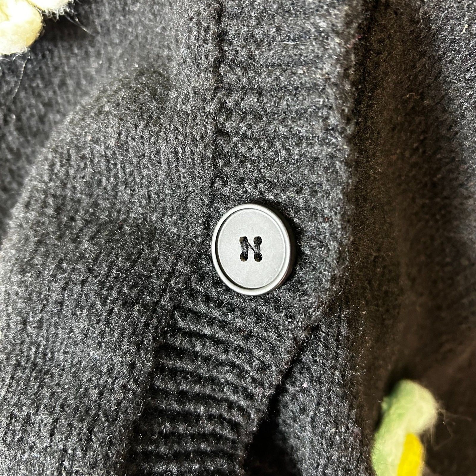 как выглядит Doe Rae Y2K Womens Black V-Neck 3D Daisy Floral Long Sleeve Cardigan Size M фото