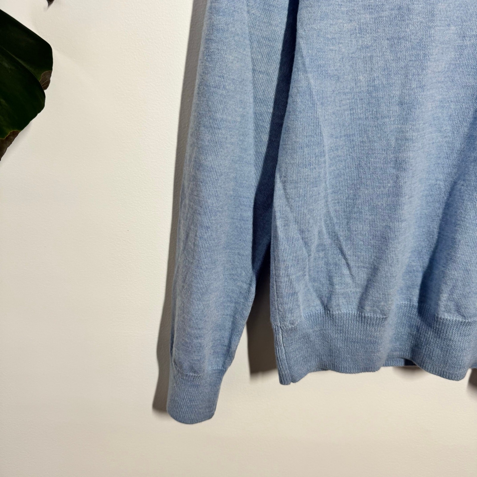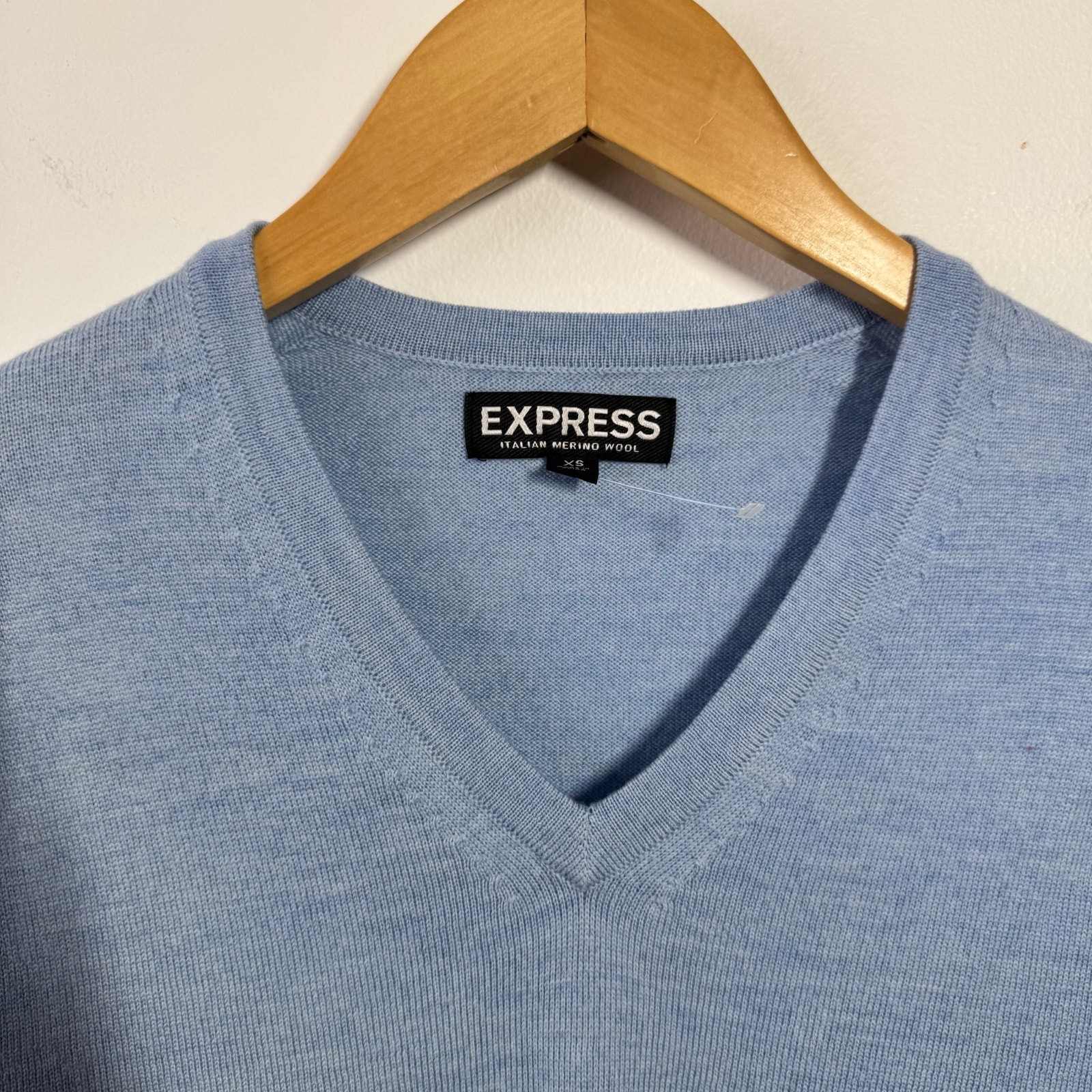 Express Merino Wool VNeck Sweater Men XS Women M Blue Preppy Minimal Modest