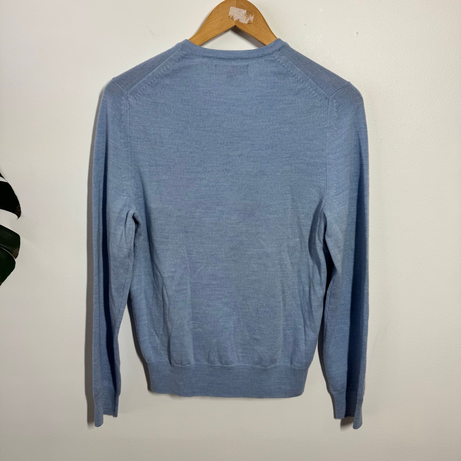 как выглядит Express Merino Wool VNeck Sweater Men XS Women M Blue Preppy Minimal Modest фото