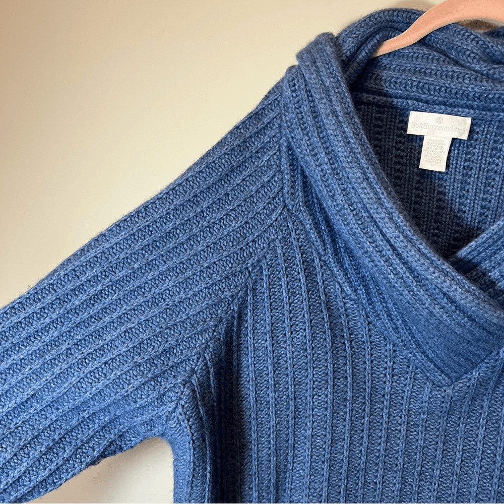 как выглядит Soft Surroundings Women s Blue Wool Cashmere Angora Blend Cable Knit Sweater 3X фото