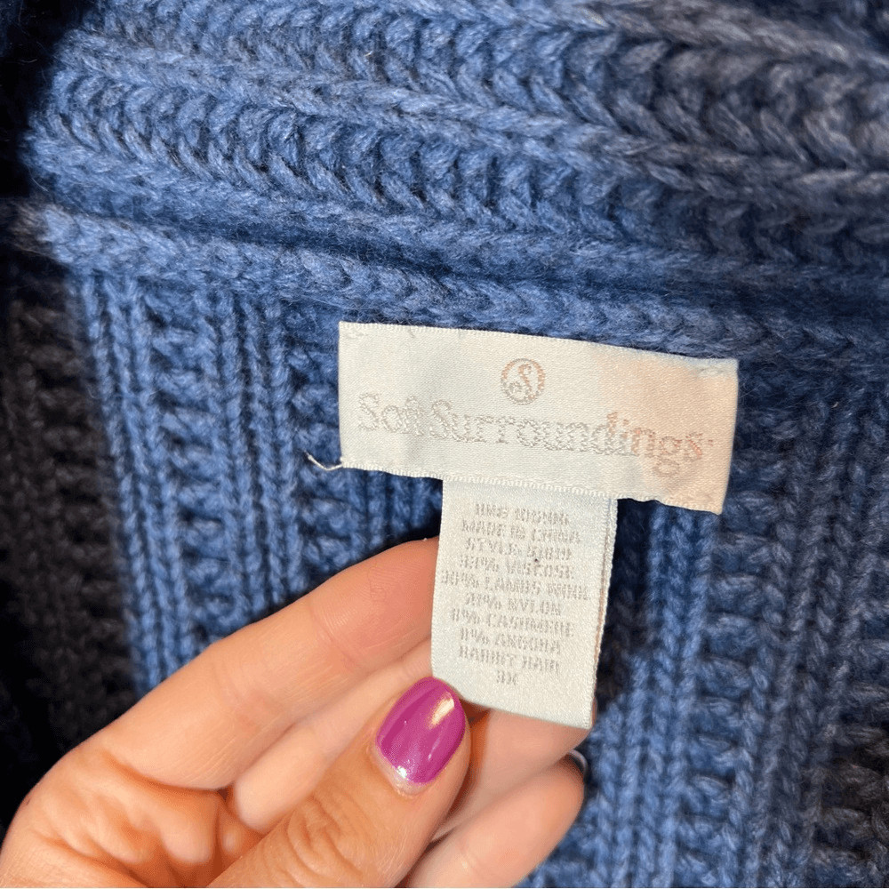 Soft Surroundings Women s Blue Wool Cashmere Angora Blend Cable Knit Sweater 3X
