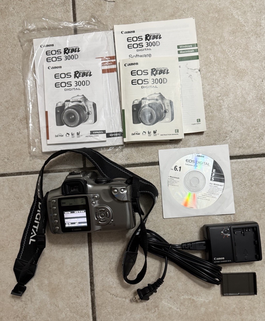 Canon Digital Rebel EOS DSLR Camera DS6041 with Cannon Strap W Manuals Bag