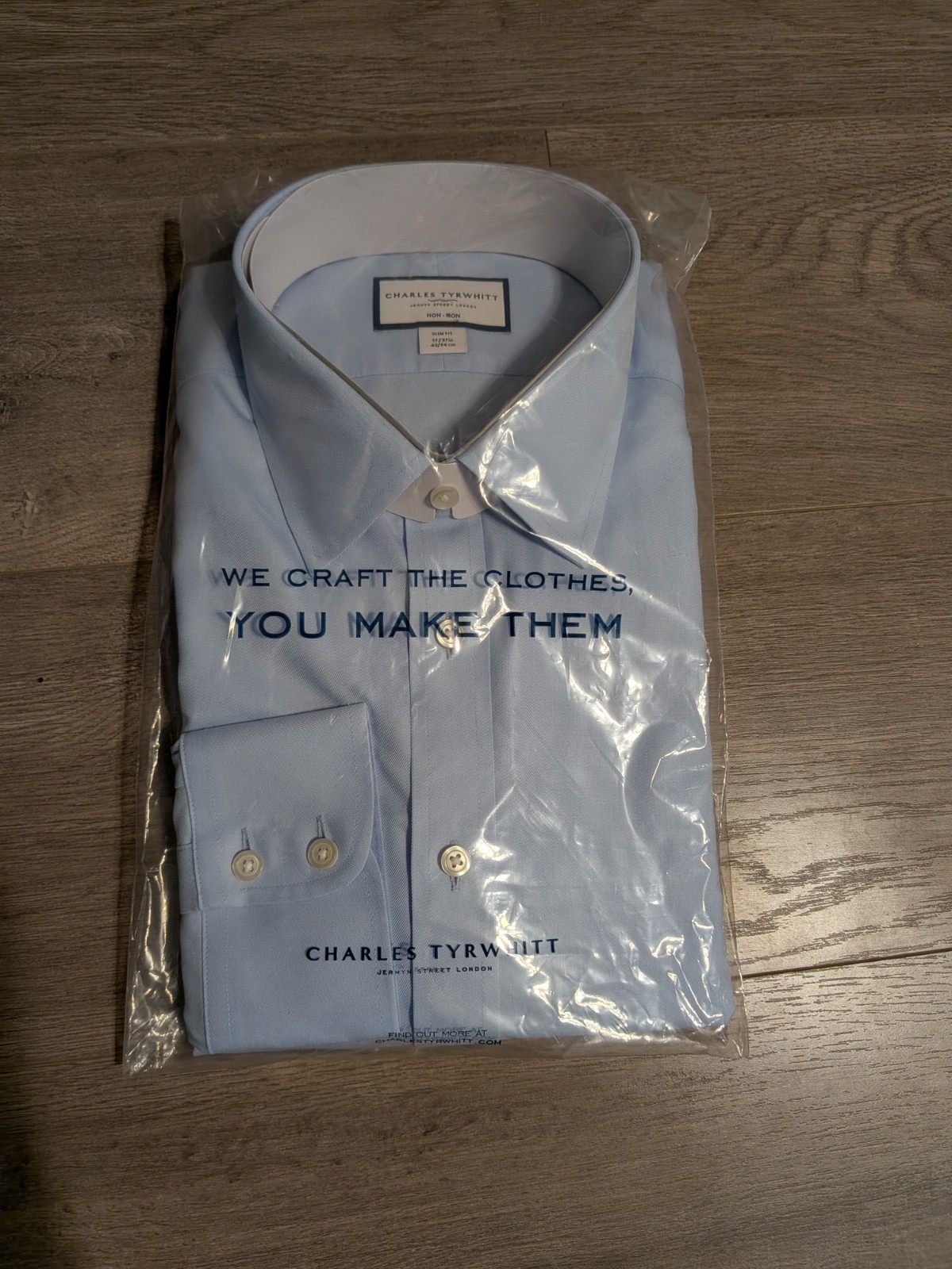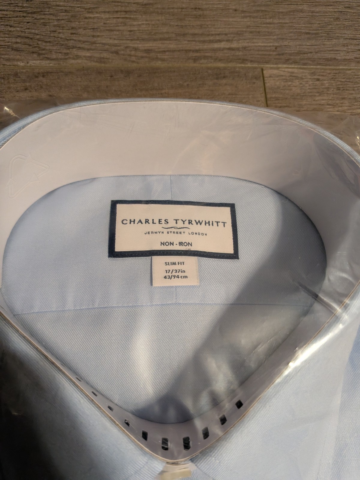 как выглядит Charles Tyrwhitt Non-Iron Twill Slim Fit Sky Blue 17/37 фото