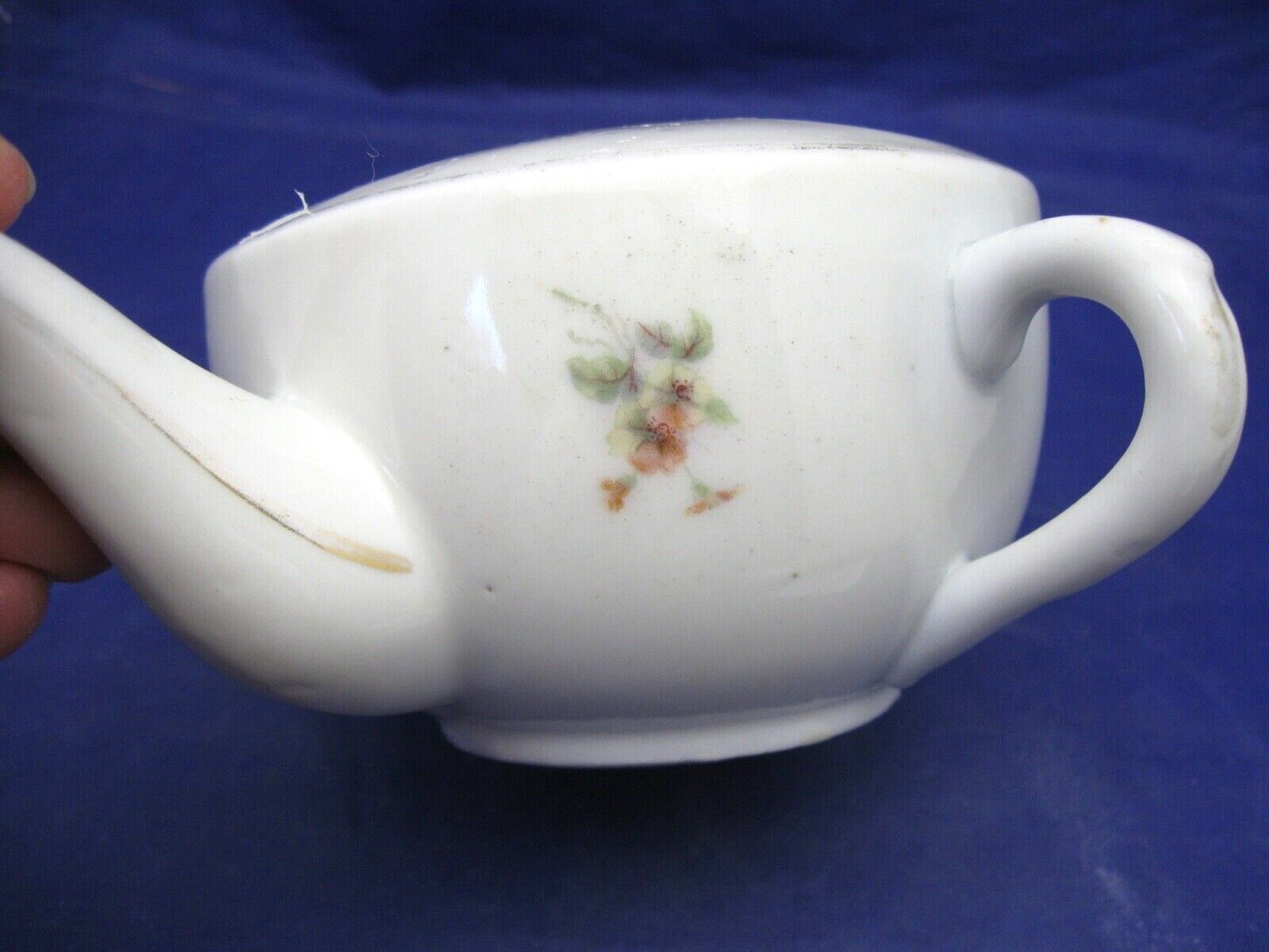 ANTIQUE INVALID FEEDER WITH ORANGE AND YELLOW FLOWERS