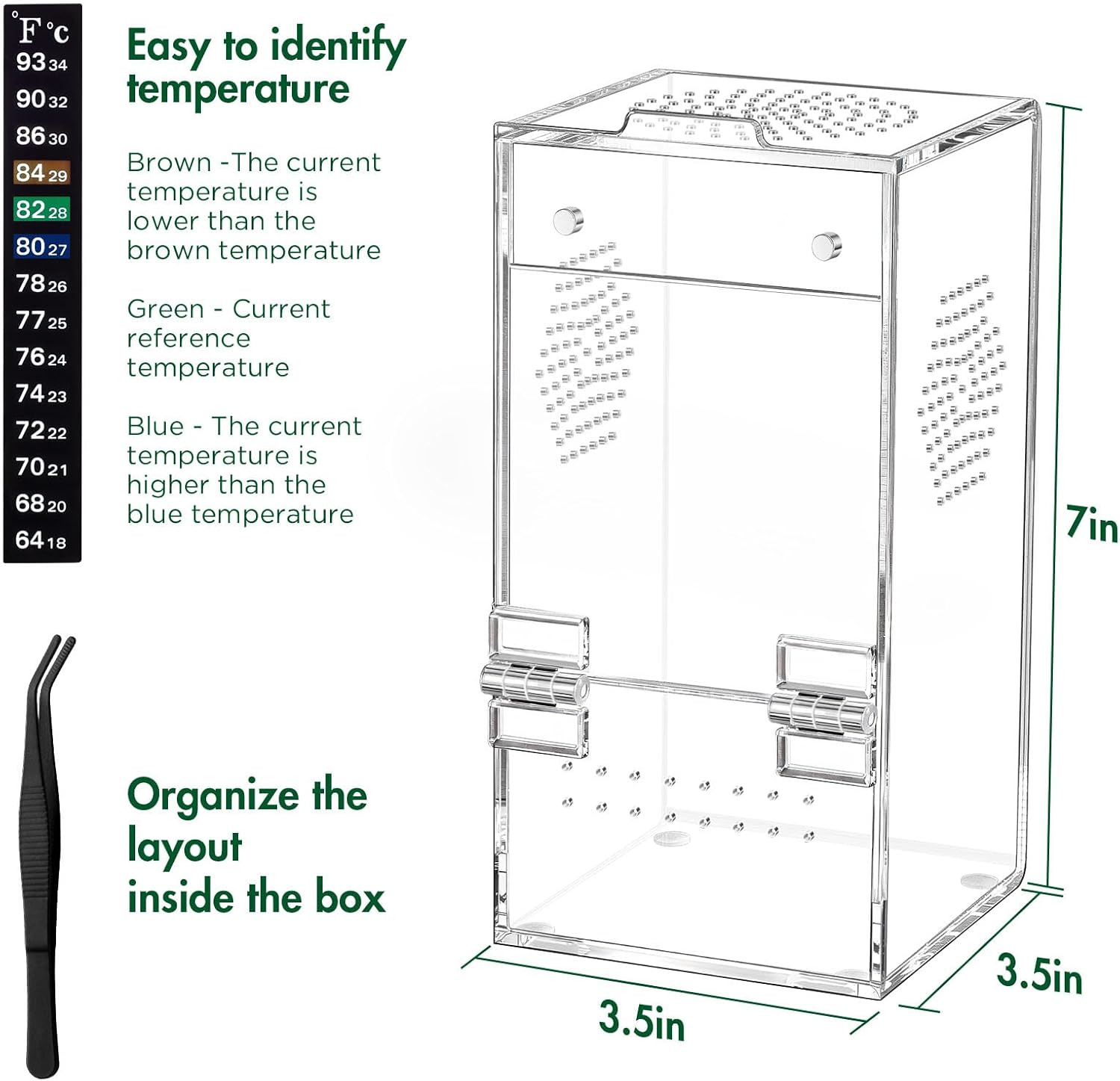 Pre-Assembled Jumping Spider Enclosure, Acrylic Terrarium with Magnetic Door A
