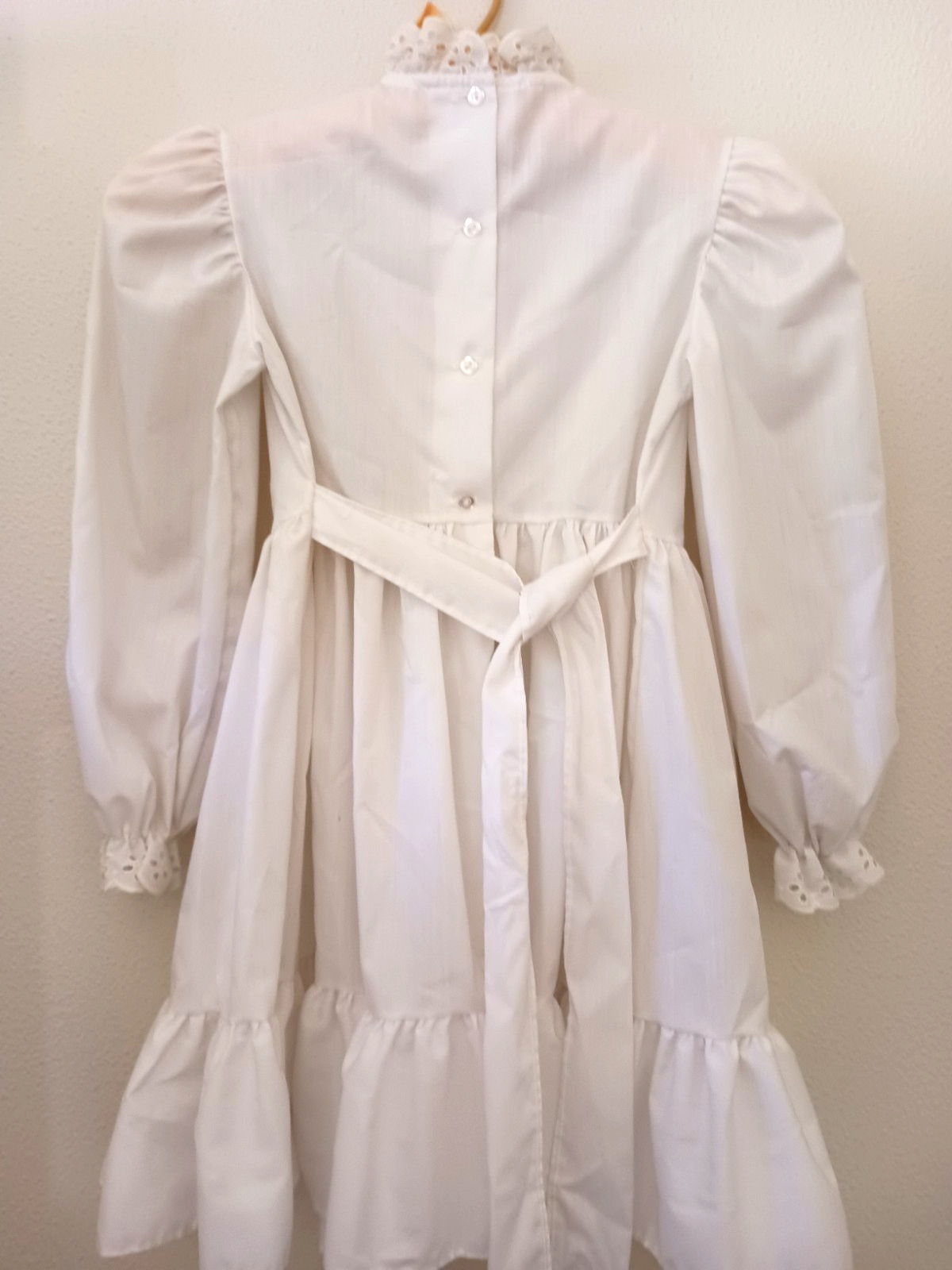 как выглядит Vtg 1970s-80s Madonna by Haddad Sz 6X Girls White Dress Eyelet Lace Puff Sleeves фото