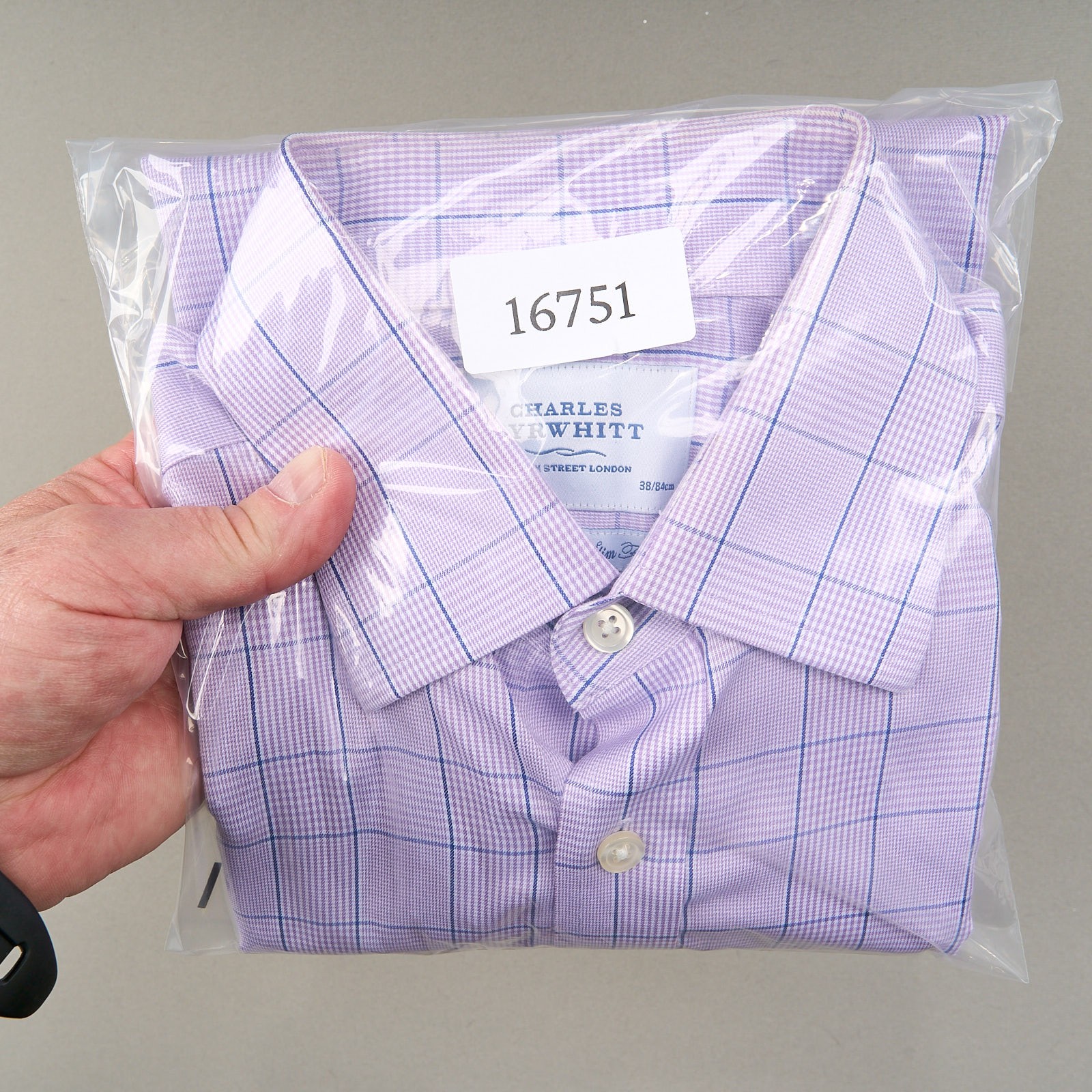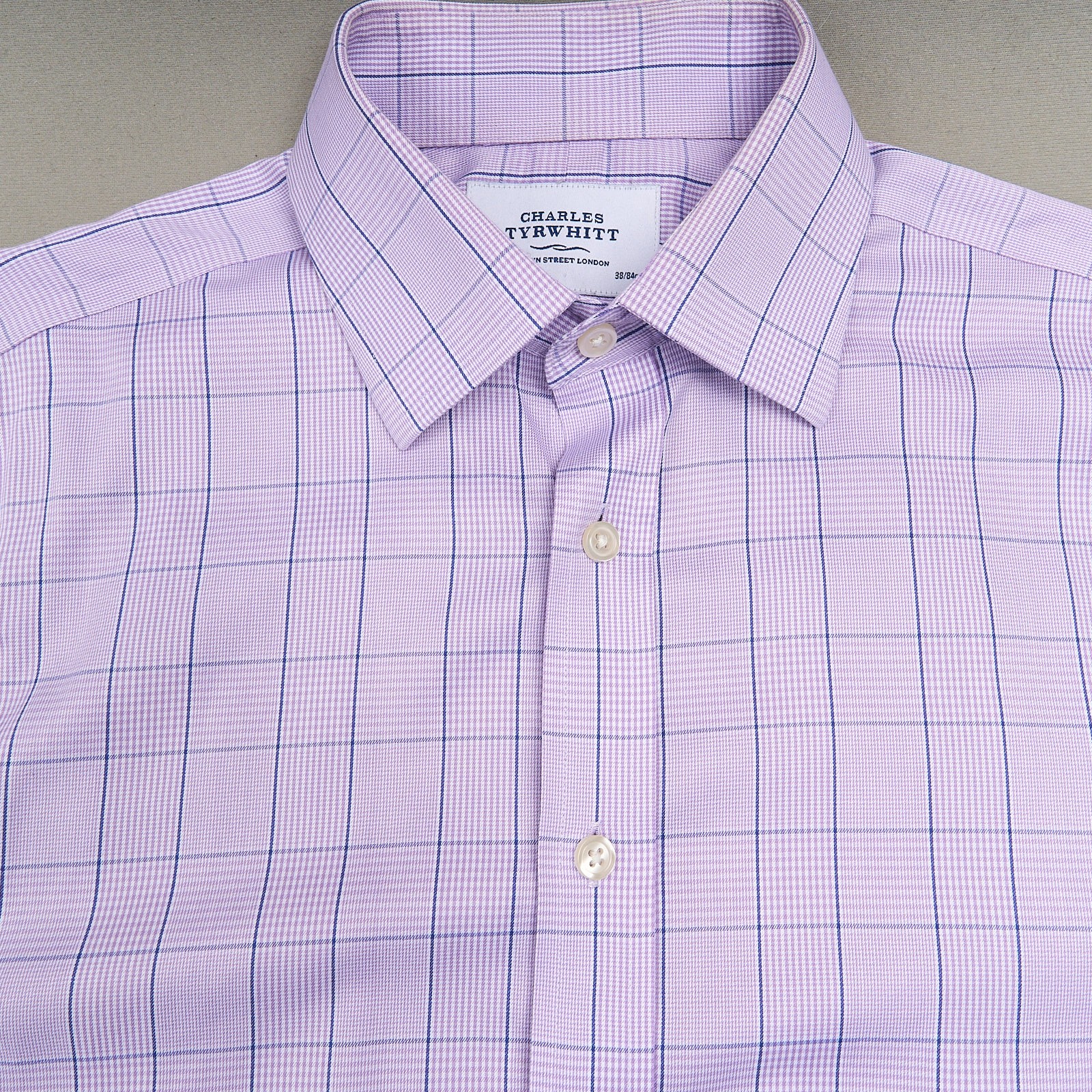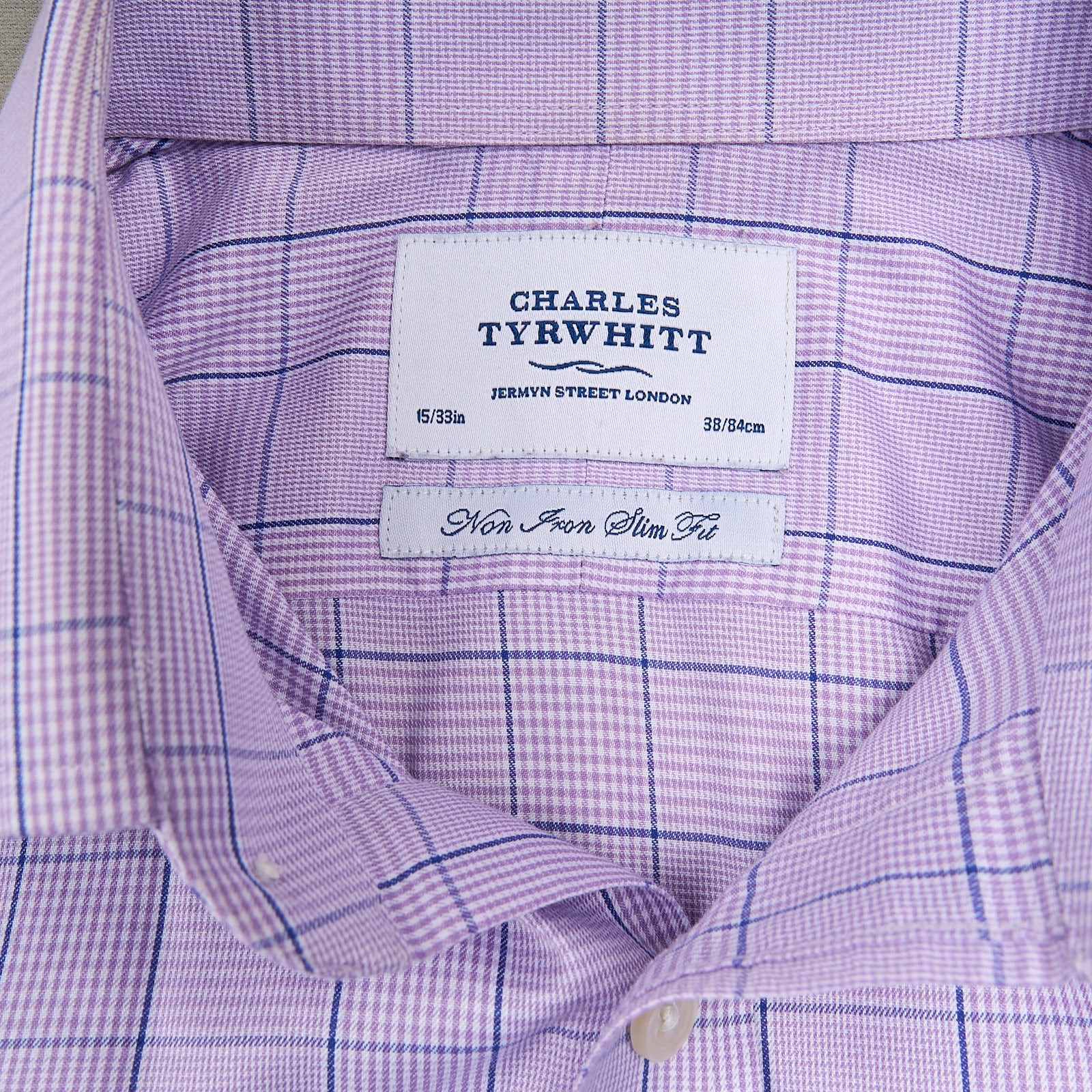 как выглядит Charles Tyrwhitt Dress Shirt Mens 15 33 Slim Fit Non Iron Purple Navy Plaid фото
