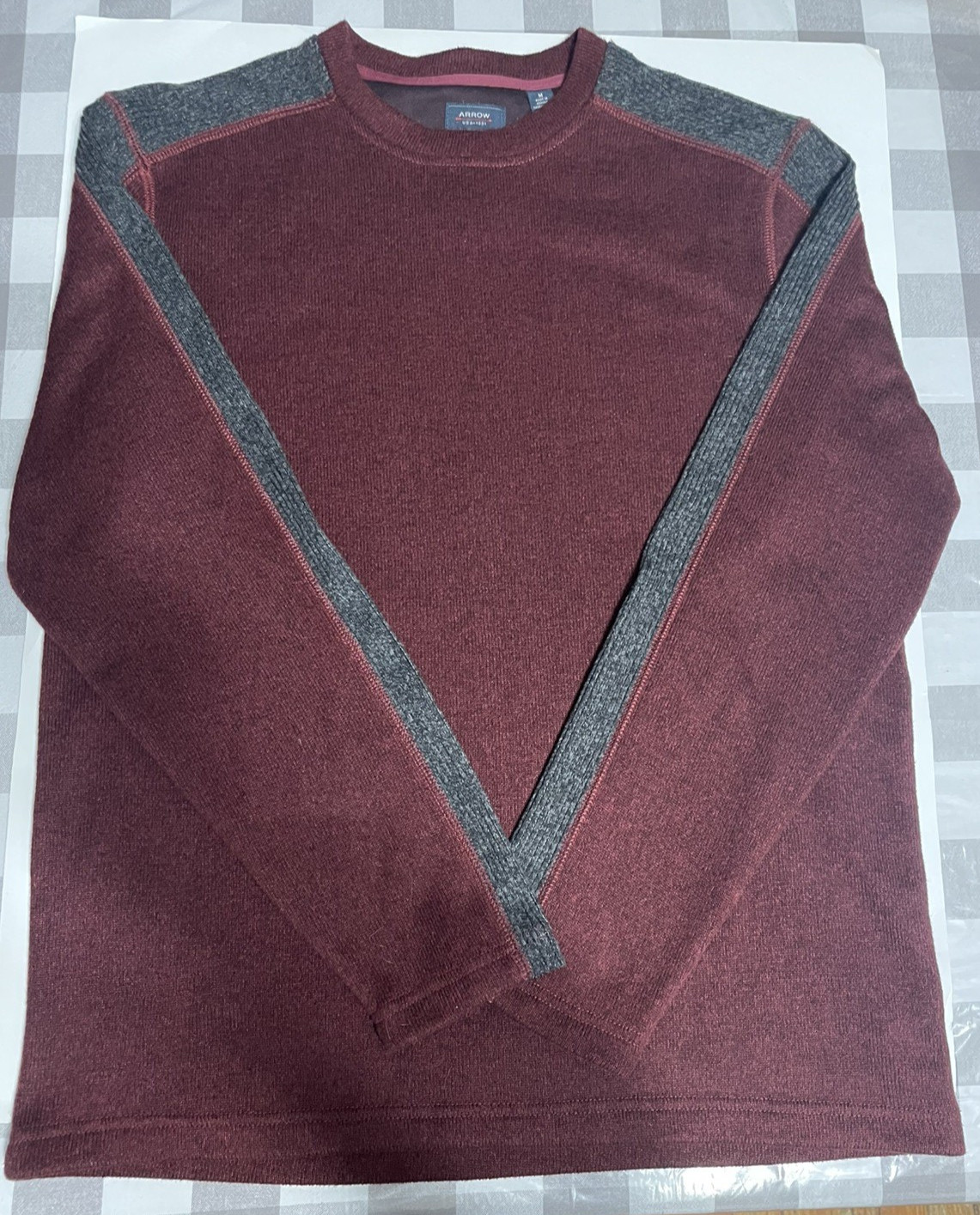 Arrow USA 1851 Men's Long Sleeve Crewneck Sweater Burgandy/Gray Size M