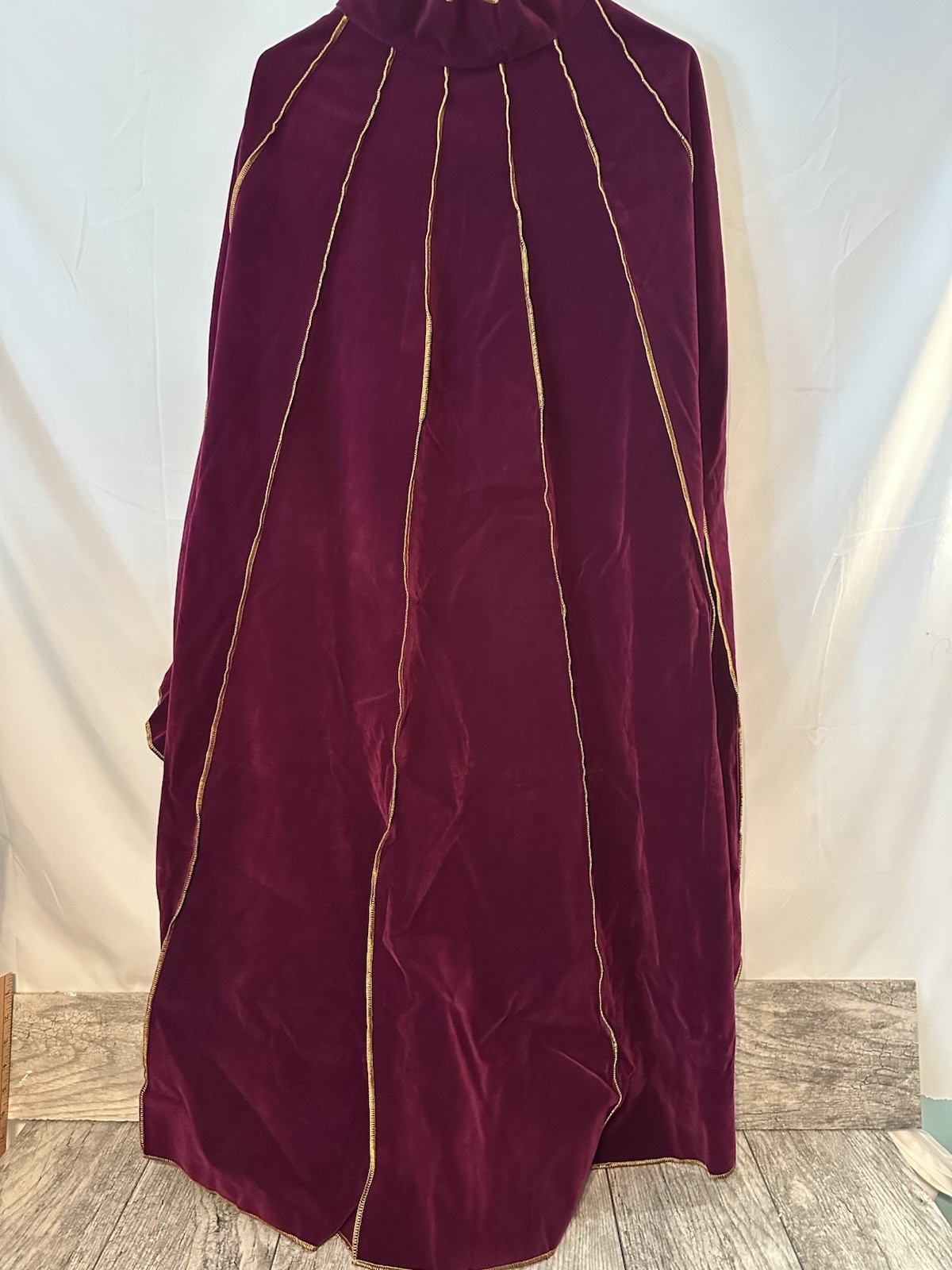 Women's Medieval Cloak Stand Collar Deluxe Velvet Gold Trim Cape for Adult