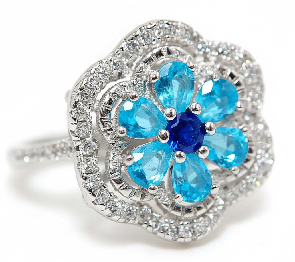 как выглядит 4CT Natural Blue Topaz Topaz 925 Solid Sterling Silver Ring Jewelry Sz 7 фото