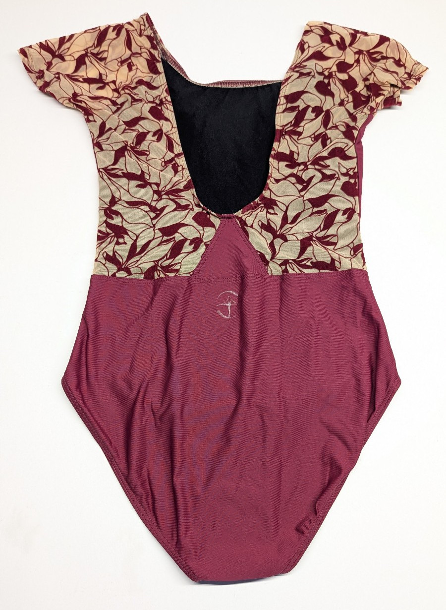 Wear Moi Zenon Ballet Leotard Women s M Burgundy Mesh Floral Sleeves NWT Dance