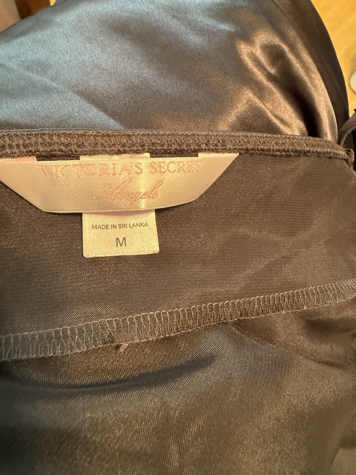 Victoria s Secret Angel Black Liquid Satin Slip Dress Nightie M EC