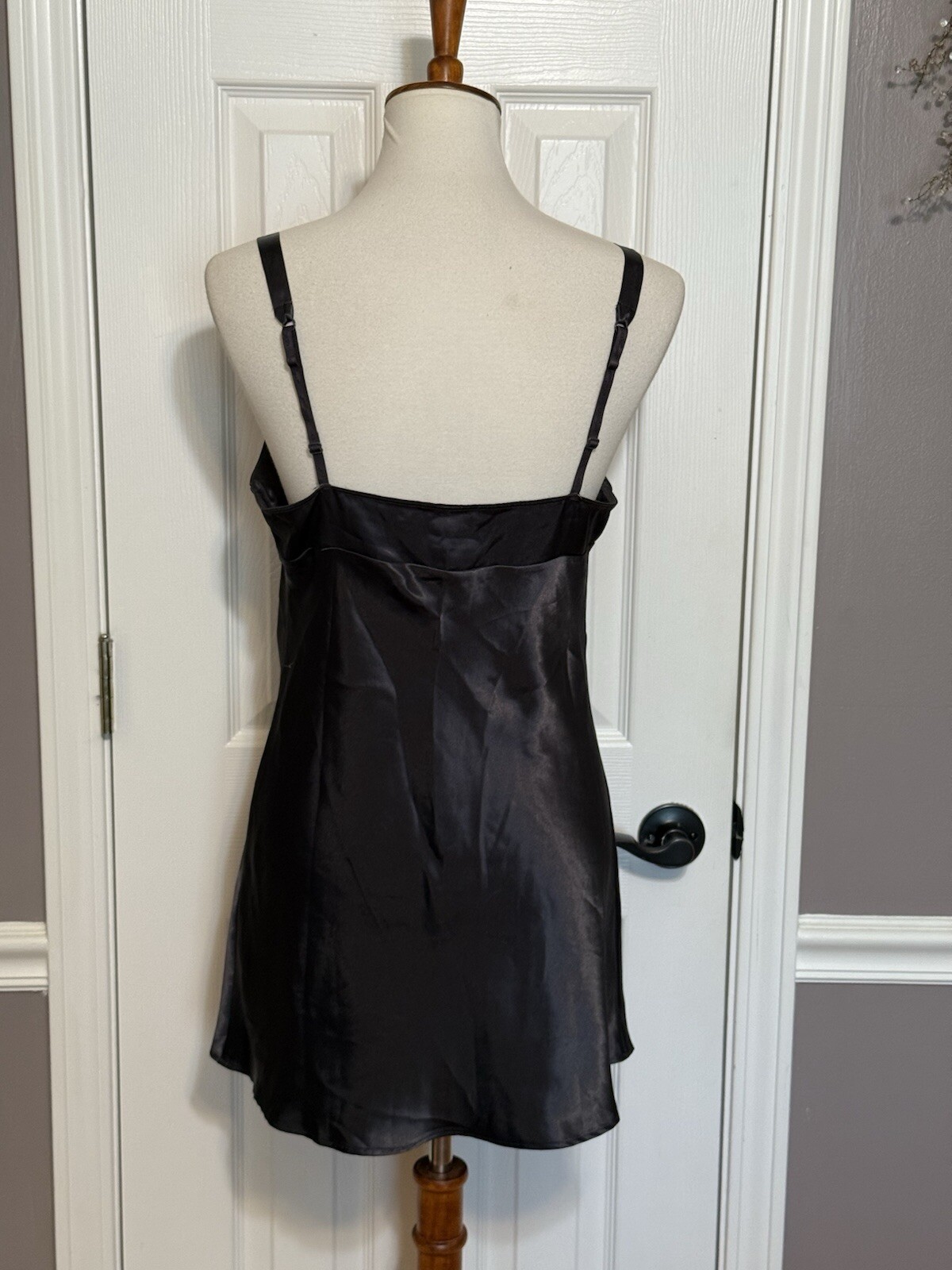 как выглядит Victoria s Secret Angel Black Liquid Satin Slip Dress Nightie M EC фото