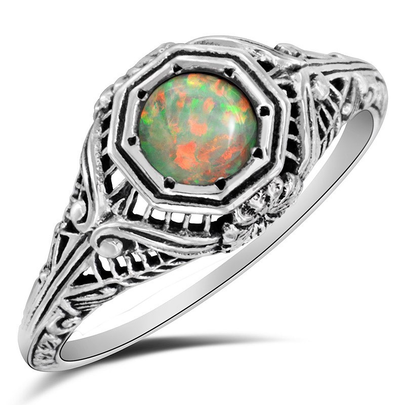 1CT Natural Fire Opal 925 Sterling Silver Filigree Look Ring Jewelry Sz 8 ZF-2