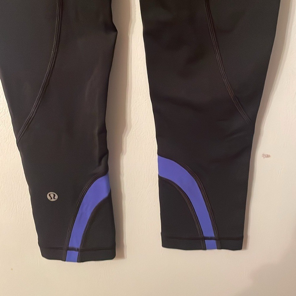 Lululemon Size 4 Black and Blue Athletic Cropped Leggings